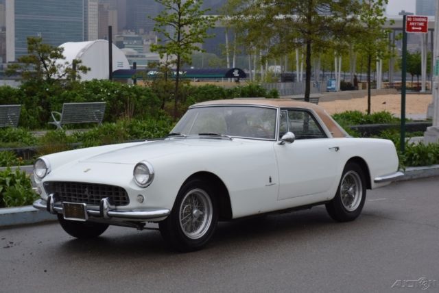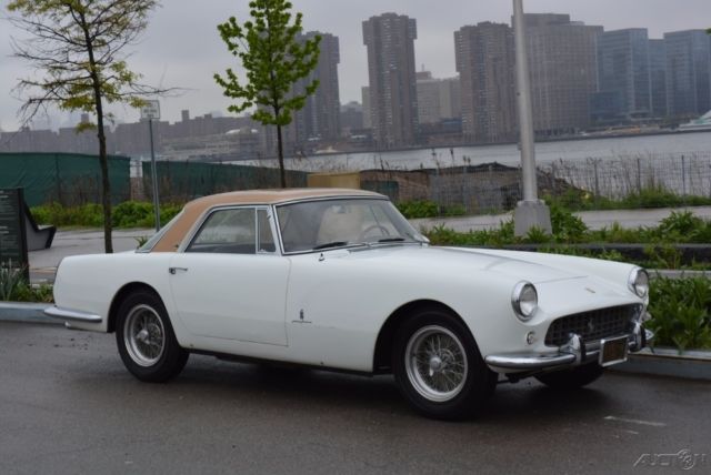 | Extremely Rare: Ferrari 250GT PF CoupeThis 1959 Ferrari 250GT PF Coupe has just 39k miles from new and is one of just 353 ever produced. This particular matching numbers example might be one of the most original PF Coupes in existence. White with it's original black leather interior that's never been touched. The paint is now checking and showing it's age. Accompanied by it's factory tool roll and owners manual. Documented by Marcel Massini. The car was acquired from an 85 year old gentleman who bought it in 1965, garaged it, and pampered it for nearly 50 years. Here's your chance to own this extremely rare and un-restored gem.Chassis No: 1315Engine No: 1315Price $725,000 |
