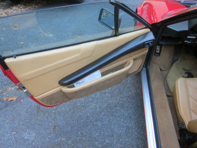 | I bought the car with 33000 miles on i, now has 34059 miles.It has been kept in my temp. controlled garage ever since I bought the car.Major servicing was done Dec of 1999 with 27,199 miles, I have all paper work. Car comes with extra set of wheels,wheels on car are not original. Spare wheel is original.As far as I can tell car has never been hit.Great clean car.Comes with all books and tool kit.Interior is tan. |