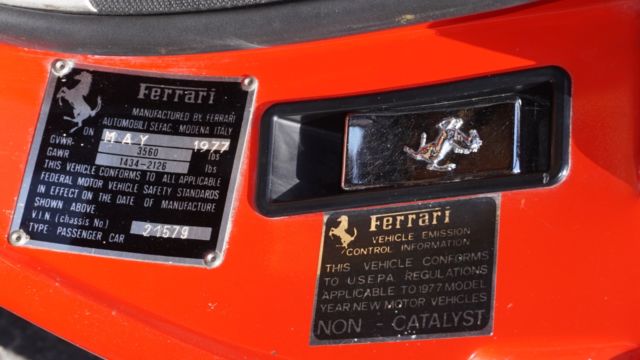 1977 Ferrari 308 GTB unrestored in its beautiful color combo Rosso Chiaro with tan interior,2 owner car with 31,235 original miles since new, documented. First delivered in July 1977 in Ohio state, the first owner kept the car till 2002 and drove the car only 27,996 miles, he sold the car to a Ferrari dealer who then resold the car in Texas to the second and last owner. Original "CAMPAGNOLO RIMS 14" still in their original condition. Original and unrestored interior, with perfect dash, door panels, and seats and perfect carpets. most of the paint its still original and show some beautiful patina. rust free car which has never been in an accident, no signs of previous repair work. perfect original undercarriage. Straight body with perfect panel gaps. Very complete car with original tool kits, spare tire, jack, owners manual, warranty and maintenance book and lot of service's receipts. In our shop we performed the follow services: Compression test (results see pictures) Complete timing belt service including tensioners, cam seals, air filter, fuel filter, accessory belts, valve adjustment, gearbox oil, engine oil and filter change. Carbs have been balanced, runs perfect and reliably off updated electronic ignition boxes. Water pump has been completely replaced in the past few months. All instrumentations are in good working order. Great opportunity to own a beautiful unrestored, complete 308 with full history and low mileage.PPI are welcome.complete file of pics available upon request. |