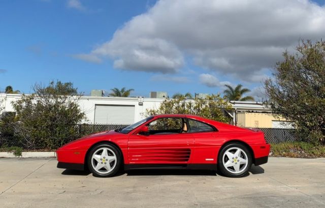 Symbolic International is pleased to present this superb museum quality 348TS with only 593 miles! Yes, that is correct, less than 600 ORIGINAL MILES. It was purchased new at Ferrari of Los Gatos in July of 1990 and has remained garaged in Upland, California since. - 1-owner 348 - Original Date Coded Bridgestone RE71 Tires - "Rosso Corsa" with Tan Leather Interior - Lift-Off 'Targa' Top - 3.4L V8 Producing 300hp (type: F119G) - 5-speed Manual Transmission - 100%...Stock - A/C - Original Owners Manual & Service Book w/ Leather Case - Original Tool Kit w/ Leather Case - Both Original Master Keys These 348's often times do not get the credit they deserve as they are often referred to as awkward looking or baby Testarossa's, but the driving experience they offer is pure (nimble) Ferrari. Imagine a go-kart with a 300hp engine behind your torso w/ extremely precise unassisted steering and a pure 5-speed gated gearbox. It is a pleasure to take to your favorite twisty road.