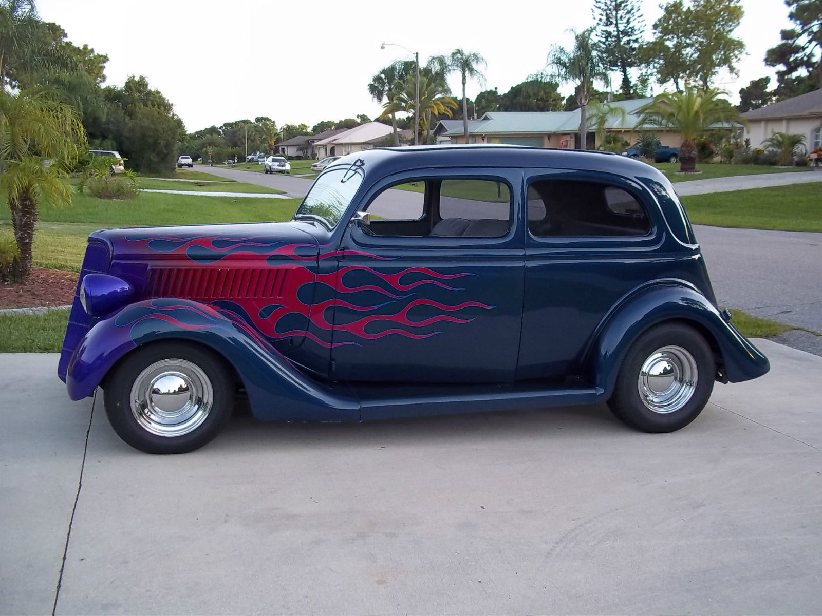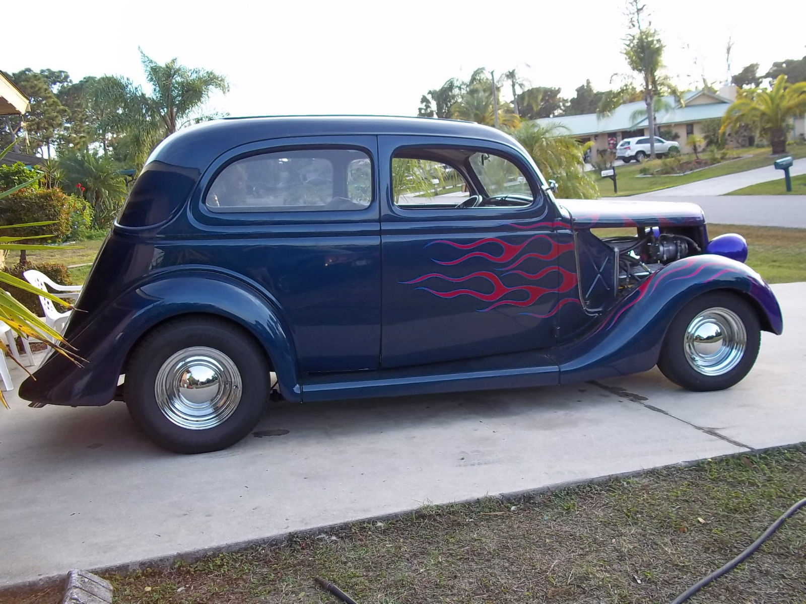 | up for auction is my 1935 for slant back. this is an all steel Henry ford car with no rust and solid floor pans with no rust. the car is powered with a 350 motor with performance cam. 350 turbo trans. power 4-wheel power disc brakes. 8" ford rear. mustang front with power rack. a/c with heat. tilt column with lecarra `wheel. good sounding sterio with amp. new wheels and tires. power windows. third bake light. everything works as it should and runs and drives great. this is not a trailer queen show car so it does have some scratches and some imperfections but no dents and the car still looks good . it is a driver and will take you across country and bring you back. fly in and drive it home. I reserve the right to end the auction early as i have this car advertised locally. questions? jim @ 941-662-8533 or 941-473-7000 |