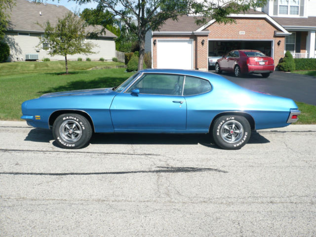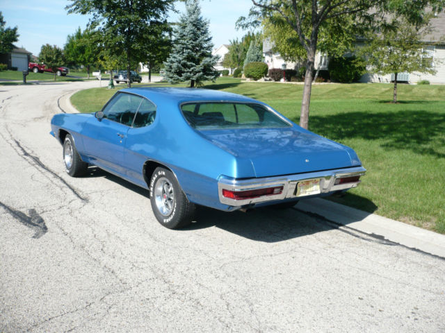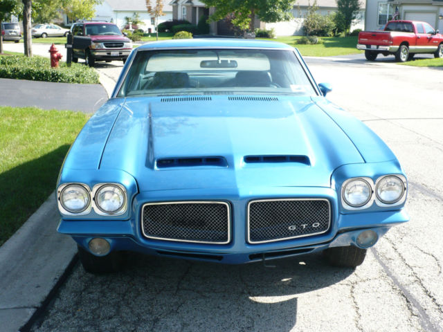For sale is a numbers matching 1971 Pontiac GTO. The car has been recently repainted in it's original Lucerne blue. Included in the repaint are reconditioned original GTO hood hinges. new front and rear window moldings. new drip rail moldings. and a pair of reconditioned original 1971 GTO sport mirrors. This car still has it's original numbers matching drive train. Floor and trunk pan are original and have no holes. The undercarriage is clean. The interior has bucket seats and a center console. The body is in excellent shape however the interior and dash does need work. If you have any questions please email me.