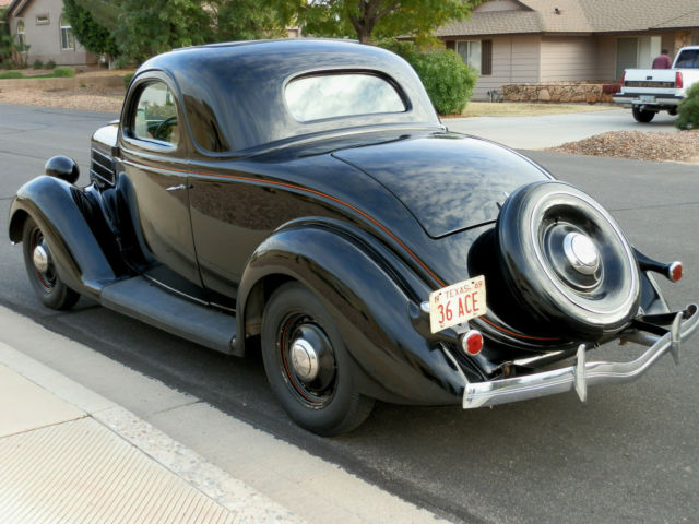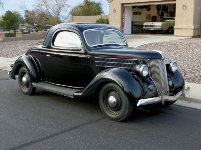 | 1936 Ford 3w Coupe. Deluxe Model with Trunk; Very Nice old car and mostly original. · Re-paint in the early 1960’s. amateur quality. · Fenders have typical amateur repairs in the openings. · Grill trim piece below crank hole missing. · Grill trim down the sides of the grill is dented. · Original wiring that needs replaced. · Replacement gas tank and new fuel pump. · Totally rust free. original; rockers. lower cowl. lower fenders and floors. Very solid. · Doors open and close as they should without slamming them. · Seat and door panels redone many years ago. Original dash and headliner. This is a nice 36 Ford 3w Coupe that sat in a warehouse in Texas since the mid 1960’s. The gas tank and fuel pump were replaced and carb rebuilt to get it running. The engine sounds fine with no unusual smoke or noise. the transmission shifts smooth and the clutch works well with no chatter. While it does run ok for short drives. it needs the typical mechanical work a 79 year old car that’s been sitting for 50 years would need. There are no signs of rust. rot. or patch panels in the sheet metal or floors and all the sheet metal looks to be original. In fact. the car appears to be original with exception of the repaint. It’s not a perfect car. but it certainly has a solid platform. I doubt you can find a more rust free 30’s Ford… it really is that nice. Currently titled to previous owner and I have the valid and clear title. VIN on title matches VIN stamped on frame. although the stamping is very faint. Call me to discuss any details about this nice old Ford. Dave at 480-734-8741. ****Relisted due to non-paying bidder. PLEASE only bid if you are serious. Why waste my time or yours??*** Payment: A non-refundable deposit of $500 is due via PayPal within 24 hours. Remaining balance due via wire transfer within 7 days. Shipping: Buyer responsible for all transport and shipping cost. I will store the car in my secure garage for 30 days to allow time for scheduling transportation. Warranty: No warranty given or implied. |