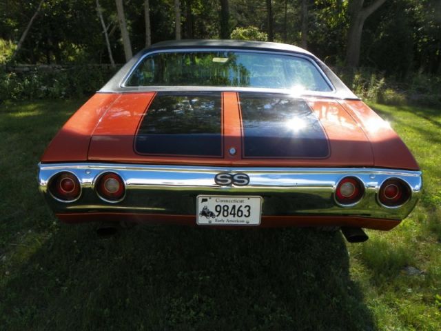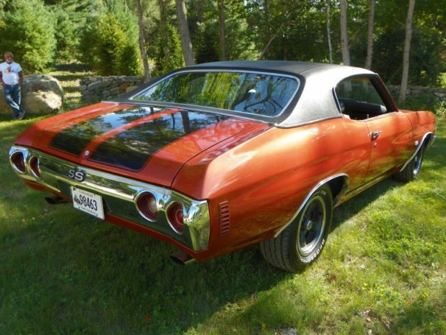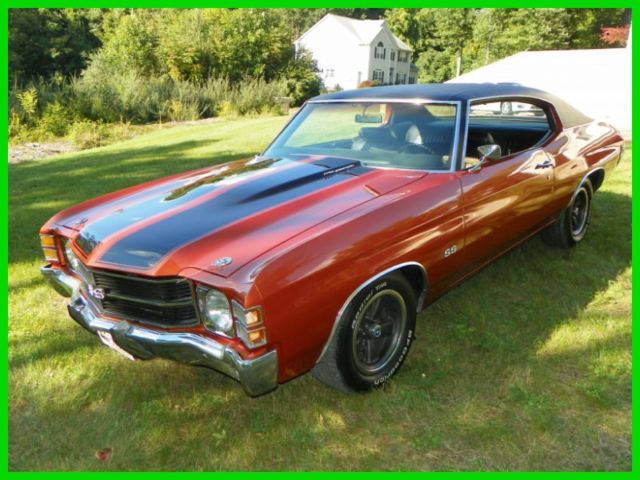 Steve 203 554 2990 131 Whiting St. Plainville Connecticut 06062 1971 Chevrolet CHEVELLE SS396 IM Classics Contact International Motorcar Classics 131 Whiting St. Plainville Connecticut 06062 View Map Ask for:Steve Primary Phone:203 554 2990 Contact: •Contact Us Vehicle Information VIN: 136371R123269 Stock: 1R123269 Mileage: 5. 00 Color: BURNT ORANGE Trans: 3 SPEED MANUAL Engine: 402 CID (396) LS3 MPG: Drivetrain: Description 1971 CHEVELLE SS396 3 SPEED FACTORY A/C. IM CLASSICS IS PLEASED TO PRESENT THIS BEAUTIFUL NUMBERS MATCHING 1971 CHEVROLET CHEVELLE SS396. THIS CHEVELLE HAS UNDERGONE A COMPLETE ROTISSERIE RESTORATION LESS THAN 5000 MILES AGO. FINISHED IN ITS ORIGINAL AND RARE COLOR BURNT ORANGE WITH BLACK STRIPES . A BLACK VINYL TOP. AND A BLACK BENCH SEAT INTERIOR THIS IS A RARE COMBINATION. ADDING TO THE RARITY OF THIS SS396 IS THE FACT THAT IT IS EQUIPPED WITH A FACTORY HEAVY DUTY 3 SPEED MANUAL TRANSMISSION AND IT IS A FACTORY AIR CONDITIONED CAR. THIS SS396 HAS BEEN ALL DIALED IN AND IS A TURN KEY CAR THAT CAN BE DRIVEN ANYWHERE IN COMFORT WITH NO CONCERNS. VIN BREAKDOWN1 CHEVROLET36 MALIBU 8 CYLINDER37 2 DOOR SPORT COUPE1 1971R ARLINGTON. TEXAS123269 SEQUENTIAL PRODUCTION NUMBERCOWL TAG71-13637 1971 MALIBU 8 CYL. 2 DOOR SPORT COUPER 16284 ARLINGTON . TEXAS BODY #705 BLACK BENCH SEAT62 BURNT ORANGE12C 3RD WEEK OF DECEMBER167 DATA PROCESSING NUMBERENGINE PADT0812CLS 1R123269 (NUMBERS MATCHING) Options and Standard Features Options 1971 Chevelle Ss396 Ls3 402Cid Engine 3 Speed Heavy Duty Muncie Transmission 3. 73 Posi Rear Power Steering Power Brakes Factory Air Conditioning Vinyl Top Am/Fm Radio (Not Original Equip) Ss Wheels Ss Stripes Cowl Induction Hood (Non Mechanical) Basic Information VIN Number: 136371R123269 Stock Number: 1R123269 Model Year: 1971 Make: Chevrolet Model: CHEVELLE SS396 Vehicle Type: 2 DOOR COUPE Exterior Color: BURNT ORANGE Interior Color: Black Engine Engine Description: 402 CID (396) LS3 DriveTrain Transmission: 3 SPEED MANUAL •Contact Us Terms Placing a Bid: Your bid constitutes a legally binding contract to purchase this vehicle. Please do not bid if you're not seriously interested or financially able to purchase this vehicle. Please read eBay's User AgreementInternational Motorcar Classics reserves the right to. Obtain and verify the registered information of all users who bid on this auction. Cancel any and all bids at our discretion. or end the auction early if necessary. Bidders Age: You must be 18 years of age or older to Bid. Special eBay Bid Retraction Rules: Please read eBay's "Retracting a Bid" If you place a bid before the last 12-hour period of the auction: You may retract that bid before that last 12-hour period but only for exceptional circumstances. You will not be allowed to retract that bid during the last 12-hour period of the auction. If you place a bid during the last 12-hour period of the auction: You will be allowed to retract the bid for exceptional circumstances but only if you do so within one hour after placing the bid. Funds & Financing: For help in arranging for a Pre-Approved loan or for any questions please e-mail or phone Steve at203 554 2990 prior to bidding. Buyers Inspection: International Motorcar Classics has done our best to disclose all information known about this vehicle for auction. International Motorcar Classics welcomes a buyers inspection. If you plan to have a buyers inspection. please make sure you inspect the vehicle prior to the auction ending. Inspection fees if any are Buyers responsibility. Representations and Warranties made by seller: This vehicle is being sold "as is". Manufacturer's warranties may still apply. Extended warranty may be available. e-mail or phone Steve at 203 554 2990 for details. No representations or warranties are made by seller. nor are any representations or warranties relied upon by bidders in making bids. Taxes and Registration fees: Out of state buyers are responsible for all state. county. city taxes and fees. as well as title service fees in the state that the vehicle will be registered. All taxes and fees must be paid in full in order for vehicle to be titled and registered. Title Information: Vehicles titles may be held by banks or lenders as collateral for loans. In many cases there is a delay in receiving the original instruments up to 21 days from the time we pay a vehicle off. While we usually have all titles in our possession at closing. there are occasions where we may be waiting for them to arrive. If payment is made by cashier's or personal checks we will hold all titles for 10 days or until funds have cleared. Shipping & Delivery: All shipping charges are buyer's responsibility. International Motorcar Classics will help with shipping arrangements but will not be responsible in any way for claims arising from shipping damage!Licensed Carriers are generally insured for $3. 00. 00. 00. We assume no responsibility for damages incurred after the vehicle leaves our showroom. All shipping arrangements are provided by International Motorcar Classics as a courtesy. We are not affiliated with any carrier. Any claims or other communication regarding shipment of vehicles will be between you and the shipper. not with International Motorcar Classics. The amount of time it takes for delivery is dependent on the carrier. but is generally 7-14 days from the date the vehicle is picked up from our facility until it is delivered to your destination. Verify with the shipper for an Estimate Time of Arrival to be sure. Finalizing your Purchase: International Motorcar Classics will contact the successful high bidder by e-mail after the auction closes. Successful high bidder MUST communicate with Steve at International Motorcar Classics by e-mail or phone203 554 2990 within 24 hours of the auction ending to make arrangements to complete their transaction. If we cannot confirm your intention to buy or the sale is not completed within 5 days. we reserve the right to relist this vehicle