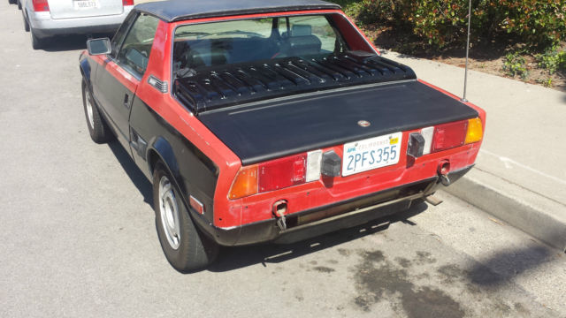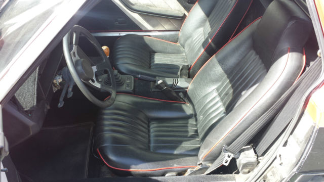 | 1985 fiat x19 . Car is in runing order just had service and new timing belt and timing belt tenshioner replaced. I removed the ugly us bumpers but have they will go with the car The red paint on the car is origanal the black was added later not very well although i think it can be fixed with some color sanding etc . My plan was to build a abarth car out of it just does not look like i will have the time for that. This is a great car no rust anywhere very complete runs very very well said to have new motor and it runs like it. Everything in the the car seems to work including the head light they pop up . It will neeed tire as they to big for the car and they rub the fenders when you turn. I think it will need some other things but not much. Regards thanks for looking . |
