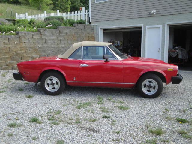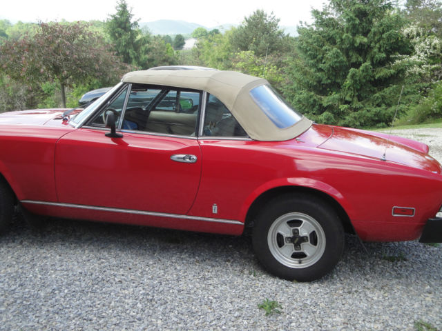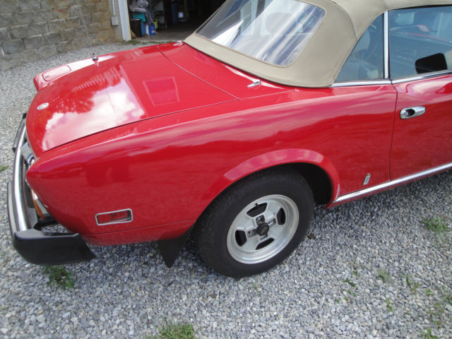 Up for auction is a very nice clean 1978 Fiat Spider. The motor is a 1800 cc with 53297 miles. The dash is in excellent condition with a wood steering wheel. A red exterior color with a very clean off white interior. The convertible top is a light tan color. The work done on this car is as follows: New Radiator and thermostat. Carburetor has been rebuilt new steering damper. Rebuilt brake calipers new shocks. New clutch and throw out bearing. All new seals for motor tranny and rear end. Tires are in good condition with lots of thread remaining. |