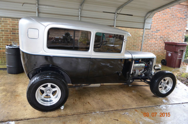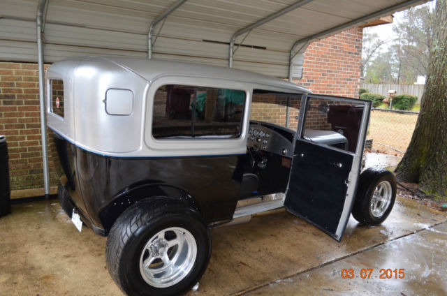 1930 Ford model A Tudor sedan street rod. Built on a Total performance chassis(titled as a 2007). 383 stroker engine was professionally built and Dyno tested at 435HP and 500lb/ft torque. Currie rear end with 2:79 gears. Paint is descent but not professional as is interior. Needs front floor mats to cover master cylinder inspection plate.Has 17 gallon fuel cell behind rear seat with filler in right rear panel(see pics). Body is original 1930 with custom modifications(fuel filler door, teel top, ecessed lights, nd shaved door handles). Hood and grill shell(1930 style, hopped four inches) is fiberglass. Painless wiring harness. MSD ignition. Ididit steering column.Street lite wheels with Mickey Thompson tires. Cruise control. Amateur built but with all quality parts. Local pick up only. Preferably no couriers.