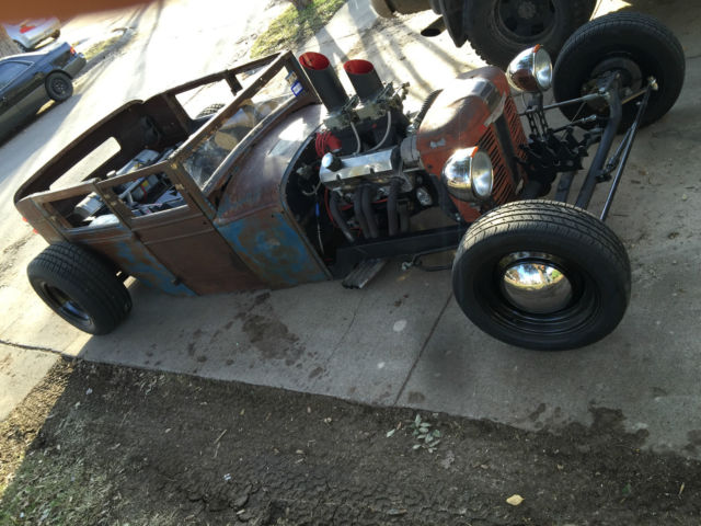 | this is a 1929 on a custom built Z'd frame 4 link in the rear. air bagged in the rear with 18 wheeler goodyear big bags 2 vailair compressors 5 gallon air tank. it has a 9 gallon fuel cell. holley blue electric fuel pump with regulator and filter and steel braided fuel line.1993 full roller small block chevy 350 bored 60 over with tunnel ram 2/4 . all msd electronics. t56 6 speed transmission. 8.5 10 bolt rearend with 4.56 gears. new black baby moon wheels new tires. |
