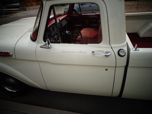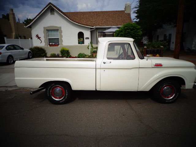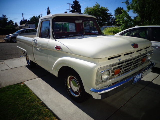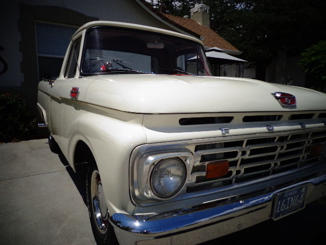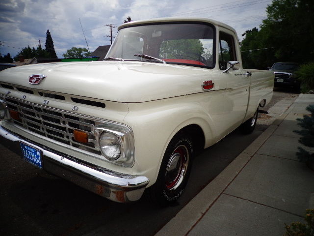 Up for auction is my 1964 Ford F100 short wheel base pickup. This is a super clean, ust free Nevada truck. The body and paint work were done at substantial cost, nd the body itself was in straight condition, ut the paint had seen better days. It was painted wimbleton white many years ago, nd I decided to stick with that color when I had it repainted. I have additional pictures, efore it was painted, nd the only real change I made was removing the side trim moulding that was very worn, nd i had the holes welded by the paint shop.All the rubber mouldings aroound the front glass, ack glass, nd wing windows were replaced. The glass is in good shape, nd at some point, omeone etched small deer heads into each wing window. There is one repairable chip in the front glass. The engine runs super strong, ith great oil pressure, nd the transmission shifts perfectly.Thetruck is surprisingly tight, nd drives very well.It does not smoke, he only required changes I made to it mechanically were a new battery, oltage regulator, nd alternator. When I purchased the truck, t had sixteen inch chrome wheels, nd tires. The engine is a 351, amnot sure if it is a Cleveland or a Windsor, ut ithas a ton of power, nd has a 4 barrelEdelbrock carb .I almost had power steering added at that point, ecause it was so tough to steer, ut instead I put brand new Goodyear rubber on the original fifteen inch steel wheels. That completely changed how the truck steered. Way easier, o much so that I thought putting power steering on it was no longer necessary. I removed the step bumper, oncluding that it looked better without it. The interior was in good shape, ust had to get a new door regulator on the right side. There is only about 200 miles on the new rubber, nd the paint is not knicked up at all. I have a set of red seat belts for the truck, nd a door seal for the drivers side that have not been installed yet. I also have the chrome sixteen inch wheels that I replaced. If you have any questions, lease feel free to call me. My name is Frank and my number is 775 848 2340. Please call before 9 p.m., est coast time .I reserve the right to remove the item from the auction at any time, s it is for sale locally as well. Please do not bid if you do not have the ability to buy. Payment must be made in its entirety within 7 days, ither by cashiers check from a major nationwide bank, ash or wire transfer. Vehicle will not be released to buyer until seller is satisfied that funds have cleared.Shipping is buyers responsibility, nd the vehicle must be picked up within 14 days of the end of the auction.