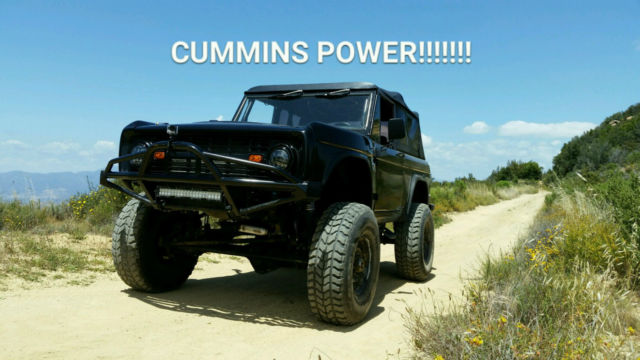 This has to be the best all around bronco out there by a long shot. Hauls ass and gets great mpg. Custom fabricated one of a kind 1971 bronco built in 2014. No bolt on lifts here. Very well designed suspension systems with extensive off road and on road testing. 4bt cummins turbo diesel engine with P7100 pump and nv4500 5 speed. 23 gal fuel tank. The turbo spools so fast and sounds amazing. 4 linked 14 bolt rear end with disc breaks. Hp kingpin Dana 60 front end. 410 gears PSC 4x4x2 power steering box ported for hydro assist, ton steering. Hydroboost with 4 wheel disc breaks. Custom super nice modern interior. Satalite radio, ackup camera, eated seats, ir conditioning, 0" ORI shocks, ox nitrogen bump stops,seats 4 and everyone has 4 point harnesses. Steel double bead lock wheels with 37" tires and run flat inserts. Everything is new it drives fantastic its my daily driver. Email nickbagby37@yahoo.com for more photos and info or contact me through ebay.