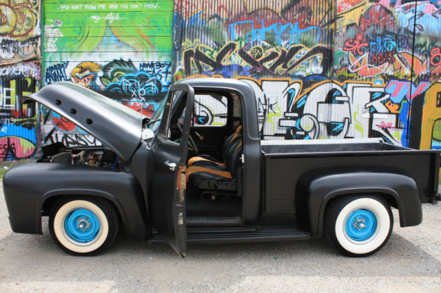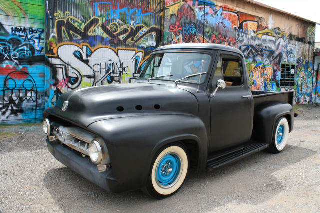 You are bidding on a Cool 1954 F-100 Custom Truck. This truck has been up-graded 4 years ago with a Ford 351 Windsor V-8 Motor mated with Automatic C-6 transmission, t has 9,000 miles since it was rebuilt and installed. The truck has been set up as a Rat Rod with Performance under the hood, his is one Fast truck that is just a pure Blast to drive. It has power steering, ower disc brakes, lectronic ignition, olley 4-barrel carburetor, ew aluminum radiator, ew dual exhaust with glass packs (Sounds Great). We put on new Custom Wheels with new White Wall tires on all fours. The front end is all independent suspension, he truck handles very well, he rear end is stock Ford rear end. The Exterior is painted satin black that gives it a Patina Rat Rod look. The Interior has new custom vinyl seats, ew gauges, ew handle grip for a shifter, ilt wheel steering, ew horn, D stereo system, ew seat belts, ew chrome rear view mirrors. The power steering and power disc brakes makes this Performance machine handle with ease. If your looking for a Rat Rod Truck with a hi-performance engine here it is, ait until you get behind the wheel and feel that Heart Pumpin' engine take you down the road. Good luck to everybody bidding on the this 1954 Ford Custom Truck. See Video: https://youtu.be/Q9QuHZpYeBw