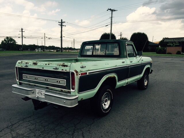 | RARE RARE RARE. I have been working on this project for several months with my son but we have moved on to others. This was a one family owned Ford F-150 4x4 short bed truck bought new in North Carolina. I have a clear title and books and records. This truck runs and drives like new. It has had suspension rebuilt in front end. Almost new B F Goodrich tires. the engine runs great and has had about 1800.00 in new top end rebuild. Heads have been worked and all top end rebuilt. Transmission shifts well and 4x4 works correctly. I have had new interior replaced two tone green seats and new jade green carpet. Also replaced dash pad. This truck has c6 high hump transmission. The truck I was told has a 351 Windsor engine but I can't find anything to verify it is the original engine that came in truck. There is included in sale a few new trim pieces and new antennae I haven't gotten around to fix. Also there is a brand new tailgate in blk primer new in box. The tailgate is the most needed piece to replace to make this truck great. There are a few normal rust spots that need attention this was our next project but as I said we ve moved on to others. Please bid to buy. There is low reserve. I am RELISTING item due to non-paying bidder. If you don't want item don't waste my time and bid. This is an almost 40 year old truck and is not new but in great condition for its age. I will be glad to help facilitate with shipping I'm just outside of Nashville tennessee. I do have the truck advertised locally and reserve the right to end auction early. Please feel free to call with any questions. 615-977-6500 |