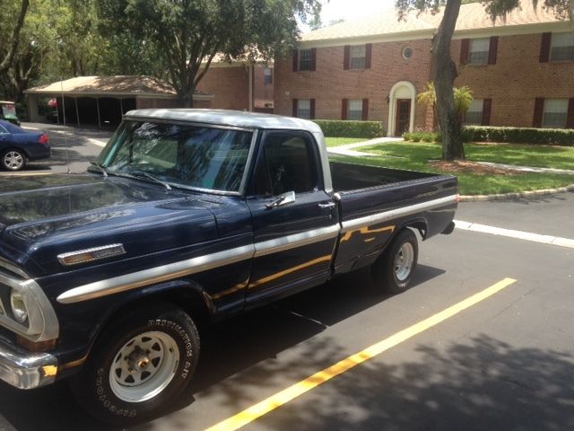 F100 with a late model 5.0 Mustang engine dropped into it. This old Ford runs great. Comesequippedwith Fully reupholstered bench seating, ew carpet, full working touch screen radio with bluetooth (no speakers), nd a beautiful new B&M shifter put in. The body is in great shape. the bed is fully re lined with Rhino Liner a toughbed linerthat will take a real beating. There are 2 blemishes on the truck. One over the driver side rear wheel and another on thepassenger side frontgrill. nothing thatwouldn'tbe a easy fix. Clean Title and bill of sale upon sale. I have done alot of work too this truck during the past 2 years that I have had it and im happy too say it turned out too be a really cool reliable truck. I feel as though im giving away gold knowing the true value of this old Ford. My name is Joshua 314-330-8963 is my phone number. call me dont text. Contact me before 5:00 pm for a faster response. Only seriousinquiresplease I dont have time for talkers, IRST COME FIRST SERVE.