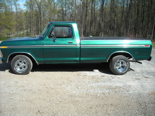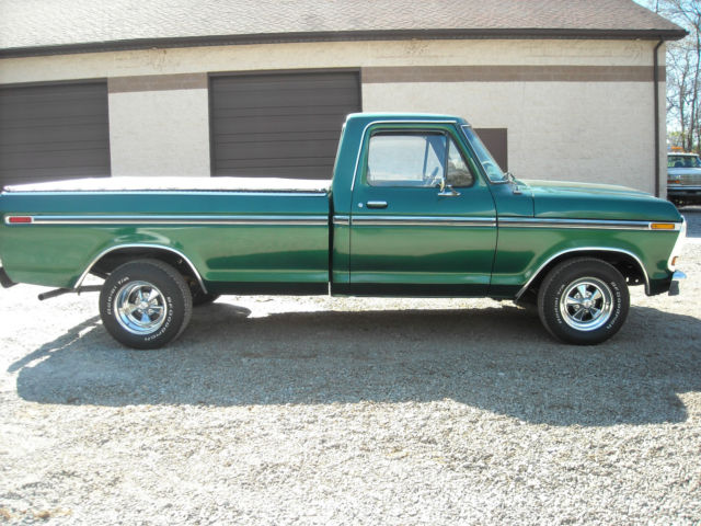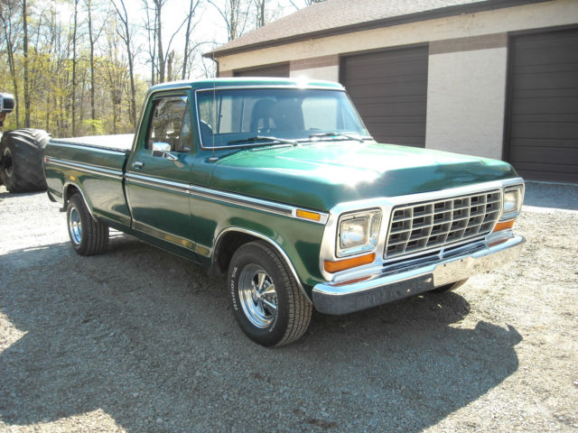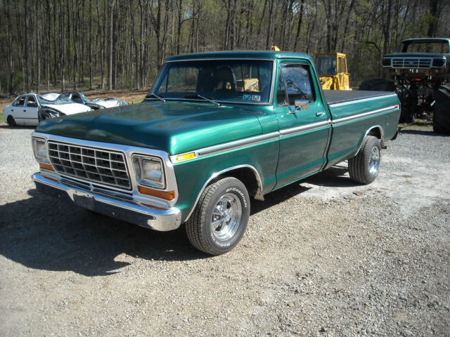 This is a 1979 Ford F-100 2WD with a 302 and AT. I bought this truck the way you see it in the pics, ll the work was done by the previous owner. He did all the work to it over the last five years but has been driven less than 1,000 miles. Some of the work includes new brake rotors, alipers, nd pads in the front and new brakes on the rear. New dual exhaust, ew gas tank, ebuilt AT with shift kit. New tires and new wheels, ew front and rear chrome bumpers, ew grill and new grill shell. The truck was also painted, here is some orange peel, ould use a buffing, lso there is one spot were the paint is pealing (see pic) around the antenna. The motor is from a newer truck but I don't know the year. The bed is in good cond., he floor and tailgate are straight and in great cond. The floors on the cab have a little rust (see pics) but are still very solid. AC works but will need charged. Overall the truck is in good cond. and runs and looks good. $500 pay pal deposit at auction end, alance to be payed at pickup.