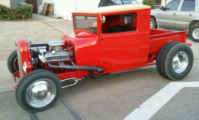 1929 Ford Pickup Hot Rod 383 SBC Stroker / Built 700 R4 / 8" 4:11 positraction, arrowed 2". Venolia pistons, 00 crank, abe Erson cam, delbrock, xhaust by Moose. Aluminum radiator, rookville shell, br>stainless insert, uns cool. Original all steel body, ery solid w/wood top insert. Solenoid door openers w/fob. All new windows & works. Chopped 6", hanneled 4" Wood replaced by steel in body. New bed by Last Refuge. 4 wheel power disc brakes. Runs strong! Drives and holds the road nicely! Everything New or rebuilt! Tapping Noise in top end/have replacement Comp cam and lifter kit. (Go to YouTube, Tapping noise drives me nuts" to hear, ould have Rhodes Lifters?) Less than 2,000 miles. Needs top covered (if you want) & upholstery. Buyer arranges and pays shipping NO TRADES ~ CASH ONLY Call Joe @ 602-762-0273 with your questions. Truck is listed locally, dd could be pulled for local sale.