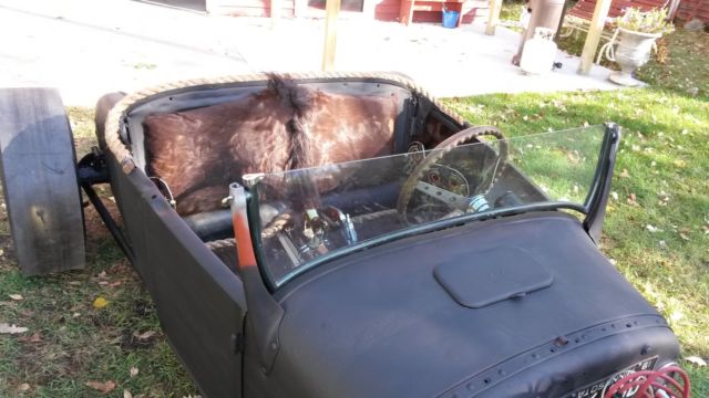 Up for bid is a great Rat Rod/Hot Rod/Street Rod Project. 1927 Ford Model T Roadster. Steel Body. The hard work is done. Custom frame. Hand forged dropped front axle. Ford 9" rear end. Cast iron power glide transmission. Chevy 283 V8 (lots of chrome). Unique headers (wrapped). Hand tooled leather dash. Horse hair seats. Cowboy boot side pockets. Black walnut floor. Speedway motors steering column. Reversed Corvair push/pull steering box (mounted and working). New drive shaft and u-joints. New gas tank. New front disc brakes. Drum rear new cylinders. New aluminum radiator. Buick grill shell. New Chopped windshield. New brake lines, aster cylinder and pedal. New shift linkage. New headlights. 50 Pontiac tail lights with blue dots. No wiring except ignition. New battery. All that is left is to finish wiring, as linkage and put in residual valves on brake lines. (I have them) This is a unique rod with kind of a wild west theme. See pics. This car is titled and licensed.Please feel free to contact me with questions. 218-766-4372 Happy bidding!
