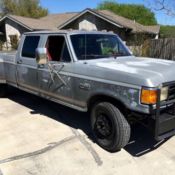 1989 F450 ford Super Duty 7.3 diesel 5 speed manual flat bed very solid well taken care of truck. Previous owner spent about $20,000 restoring this truck. It has homemade stout flatbed. Good Michelin tires, ew clutch, ew linkage, ew glow plugs, otor has been went thru about 20,000 miles ago transmission has been rebuilt recently Has 3 in lift on it comes with heavy duty front bumper, hite in color to match truck, n pix it is on bed of truck It rides and drives great especially for and F450. This truck is worth taking a look at, here isn't a spot of rust anywhere on the cab It has captain chairs The high beam headlights are the new expensive blue lights, hey really light things up. 660-676-3478 |