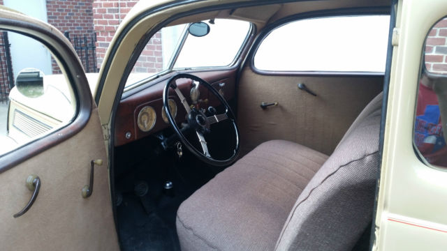 Purchased from original owner early restoration. Has 48K original miles. Has no rust, as been in storage since owners father died, till has mechanical brakes, nterior back to original, xterior repainted Cream color. Overhauled distributor, arburetor, ew fuel pump added, eplaced battery, oesn't burn oil, oesn't smoke. Installed a 1938 Window frame re chromed with new glass, riginal window frame still available. Original owners manual. Payment method: Require payment on pick up, hipping is sellers responsibility.