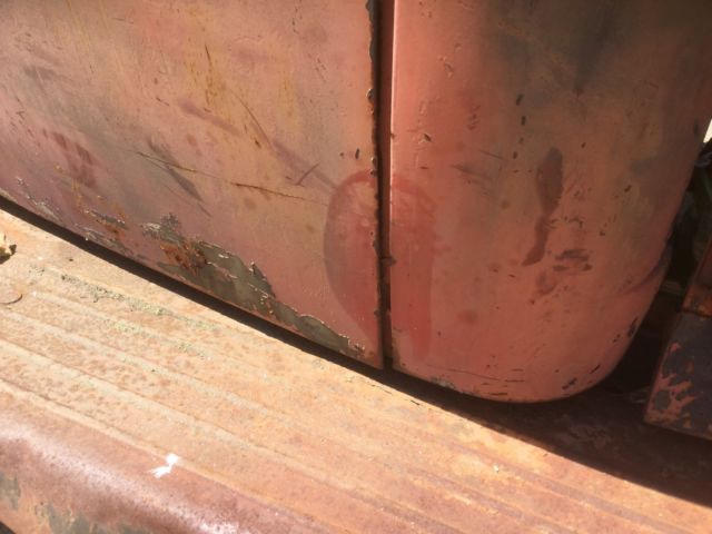 1938 Ford 1/2 pickup with great patina. Has Shell Service station insignia hand painted on the doors. This belonged to a shell service station in the Willow Glen areas of San Jose California in the 1940s and 1950s. On the dash is an Identifaction plaque from Modern Motor in Shawnee Oklahoma where it was originally purchased. This truck hasn't been licensed since 1959 and has both yellow California plates with black letter that came out in 1956. The frames has been blasted and repainted chassis black and the differential has been rebuilt. The is no motor or transmission, ut there is a nice radiator and gas take and it comes with the bumper.. The body pretty good rust wise the cab corner and doors are very solid. The have the regulators but no glass. The steering box is not in it but it rolls easy and can be loaded on a truck. I have a Chevy column from the 1970s.The tailgate is missing as are the door handles. The rear cross member where the spring purchase is has been modified to lower the truck and it was nicely done,so it either needs a drop axle in the front to make it level or replace that rear cross member to make it stock height again. It is a solid truck with not much rust but some dents mostly in the front, ould make a great rat rod or could be restored. I am selling it with a bill of sale I will print from the California DMV site because it has been out of the system for many years, ery easy to reinstate. Great project with minimum rust repair.