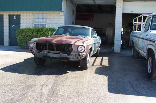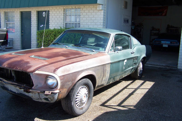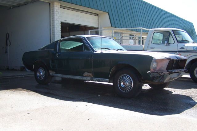 This is an auction for a 1967 Mustang Fastback that was originally a 6 cylinder auto car but has been converted to 289 V8 C-4 automatic, lug 4 wheel power drum brakes, inch rear... I suspect the previous owner used a coupe with these options and swapped them directly onto the car. The engine does not run but turns, 'm sure with some elbow grease and fresh parts ( ie. starter, lternator, attery) someone with some mechanical know how could get this to run but I would recommend total rebuild of all drivetrain for it to be dependable. The body does have rust in the usual places that these Mustangs do ... front floor boards (cowl), ower rear quarters ( somewhat but not bad), lease see pics. I have a clear Florida title and will supply vin number to winning bidder. Please feel free to ask any questions. This is an auction for this vehicle as is where is with no warranty implied, lease ask questions before bidding. Thank you for your interest and good luck bidding.