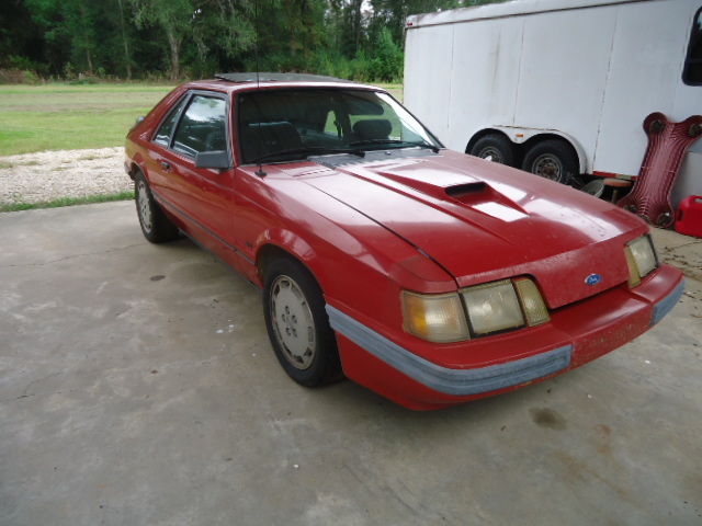 1986 2R Jalapeño Red SVO Mustang VIN: 1FABP28T9GF232558 Mileage: 158,191 March 2006 Inspection sticker, idn't drive much after that. I acquired this 1986 Jalapeño Red SVO Mustang on 6-3-1993, 1 years ago. This Mustang is ready for restoration, as never been wrecked. I recently installed new battery, uel pump, uel tank, amp; fuel filter just to get the car running. Car still runs and drives good. Brakes are a little mushy. Shifter rubber bushings are bad. Car will crank and drive on a trailer. Before we stopped driving the car: Evergreen stock Turbo valve stem seals, rakes, iming belt, rank seal, am seal, ntermediate shaft seal, une-up, FI module, eater core, vaporator coil, /C compressor clutch. Head lights, & N filter, hifter knob, ead liner. Car was in good shape before we stopped driving. Everything will need to be checked out before it is road worthy. Car was used for daily driver before purchasing newer vehicle. Was planning on doing restoration, ut don't have the time. Spats are missing, ave upper wing, ut needs repairing. Have original leather seats that will be sold with the car. We took out the leather seats because they need re-covering. The car will come with the Cloth seats as seen in the pictures. Insulation under hood is missing. A/C belt is missing also. P.S. I forgot to mention it has a sunroof! Location: Loranger, ouisiana |