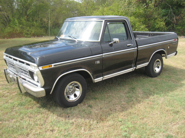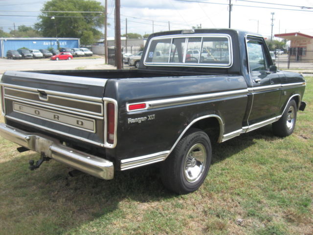 | 1974 FORD F-100 RANGER XLT SHORT BED (RARE) V8 360 ENG AUTOMATIC P/S P/B AIR (NOT WORKING) ORIGINAL PAINT HAD HAD SOME BODY WORK DONE ON REAR QT PANELS NEEDS BRAKE WORK BODYWORK RESTORATION SOLD AS IS FOR SALE LOCALLY RESERVE THE RIGHT TO END AUCTION EARLY$500.00 DUE AT END OF AUCTION BALANCE TO BE PAID IN CASHIERS CHECK BANK DRAFT OR CASH TITLE WILL BE RELEASED AND TRUCK WHEN PAID IN FULL THANK YOU |