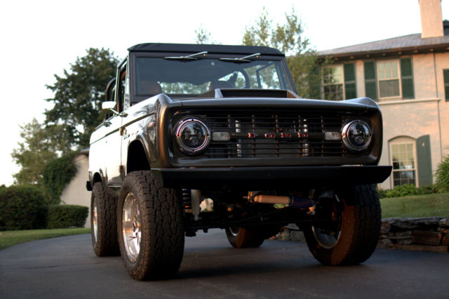 Custom 1972 Ford Bronco frame off restoration. Brand new body purchased from Bronco Graveyard and professionally assembled at my body shop. Frame was sandblasted and coated. 3.5" ultimate suspension from James Duff and4 wheel disc brakes from TBP.New 5.0L 340 HP ford crate engine with MSD EFI and ignitionsystem. Total parts invested over $35000 plus many many man hours of labor. This truck is either brand new or the few original parts have been rebuilt. I have all receipts to show. If you are looking for a one of kind beautifully restored Broncothis is worth looking at.If you are local please come look, f you'd like an appraisal I can help arrange that. Please emailany questions