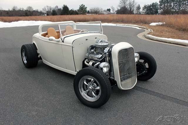 How about a Pearl white 1932 Ford Street Rod? It doesn't get much better than this. Our 32 has a late model 350 Chevy and a automatic transmission. Lots of tasteful chrome, oil over shocks all around and Jaguar IRS. The fiberglass body comes with the optional hood and side panels. This roadster sits just right on American Racing wheels and you'll sit right in the great looking saddle leather interior. Auto Meter gauges, odern sound system and a tilt wheel add to the creature comforts. Nice custom treatments that include a body color roll bar with integrated third brake light and a power deck lid make this a very nice car. The best part is that it runs and drives great! This rod is ready for the road. Please contact Bob Reilly at Rosner MotorSports 540-287-4378/rreilly@rosnerauto.com for more information.