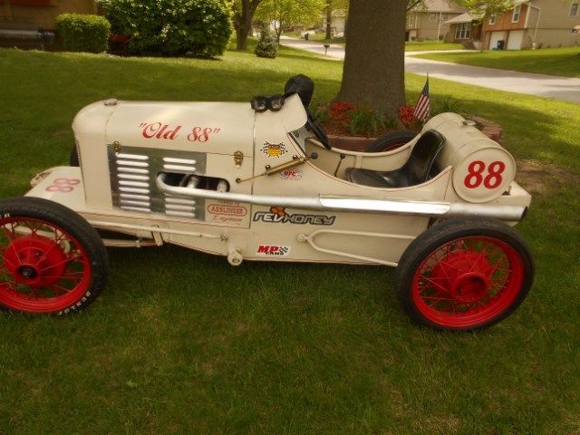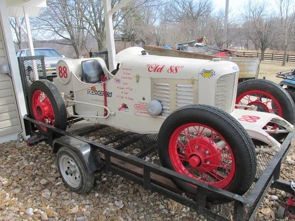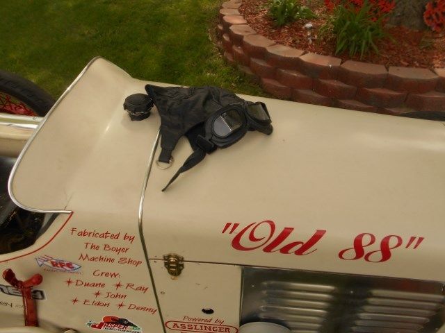 | Vintage. Model A. Model T. 1920 - 1930 custom built race car. Custom built. one of a kind. race car. '31 Chevy frame. Model T front axle. Model A wheels. A-14 80 hp motor with synchronized 5 speed transmission. Car is capable of running over 100 mph if you're man enough. This car was built in 2009 by Ray Boyer of Sterling Illinois and made it's rounds on the USAC circuit in Indiana. The rear tank has been signed by 3 USAC Hall of Famers. Gordon Wooley. John Godfrey and Ray Goodwin; 1 of Kasey Kahne's USAC drivers. Brad Sweet #49; Bill "Speedy" Smith of Speedway Motors; Bryan Clausen #39 of Tony Stuart Racing. and the late Duane Esslinger. Slight sheet metal damage on right side near brake lever. easily fixed. I also have 2 spare Model A wire rims that go with the car. The car has never been titled and so a "Bill of Sale" will be furnished. The Model A engine has. at some time. been replaced with a Nissan A14 engine and drive line. There is also a leather helmet and goggles to go with the car. The trailer in the photos is not included but can be purchased separately for $500. 00 and has a clear title. No warranty is expressed for the car or trailer. Any and all shipping is at the buyer's expense and responsibility and local pick up is available. All funds must clear prior to picking up the vehicle. |