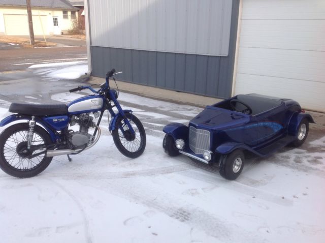 | Here's a really cool little 32 Ford Roadster mini car listed at no reserve for way less than it cost me to build it. . It has a fiberglass body and heavy steel tube chassis. The engine is a Honda 125cc from a four wheeler. It has an automatic clutch and 5 speed with reverse. The headlights,taillights and horn all work. The paint is PPG base coat,clear coat and very nicely done,there are a few small marks from being driven. I built this car so my sons would have something to put in car shows with my cars several years ago. It runs well and is very easy for kids and adults to drive. Car is for sale localy so auction may end at any time. Call for more info @660-631-0550 |
