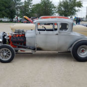 Hello, I'm selling my "Model A Coupe" project. It consist of a 1932 style frame pinched and built by Gary at Blackboard Hotrods. The engine is a 55 Desoto Hemi - 291 w/ a four barrel carburetor, t's all stock. The only thing that was wrong with the engine was that the distributor had a short in it and I replaced it with a different one. It started right up with one pump of the carburetor and doesn't smoke or knock. The lifters are pecking a little, ut should quiet down as it runs some more, here is virtually no sludge build-up under the rocker covers. It hasn't ran since June 2008 but it turns freely. The transmission is a Ford T5 and mates with the engine via a Wilcap adapter w/ flywheel. The crank needs to be tapped to install the flywheel. The front axle and split wishbones w/ bungs installed are from a 1934 car. They are being held up by a new Poise front spring, 7-41 round back spindles, 940 Ford Front Brakes (backing plate and drum), new kingpins, nd a 1942 16" Ford wheels. The rear-end is from an S10, adder bars, O-CAL Speed Shop Rear Spring and 2 new wheels from Wheel Vintiques (Steel, ray Primer, 6 in.x 4.5 in., x 4.5/4.75 in. Bolt Circle, .75 in. Backspace). The 30-31 Model A coupe comes with doors but it's missing the decklid. The previous owner chopped the top 5" and that's how I bought it (top just being placed on the body, ot welded). The body does need work but nothing too major, t does have rust, ents and a few holes.