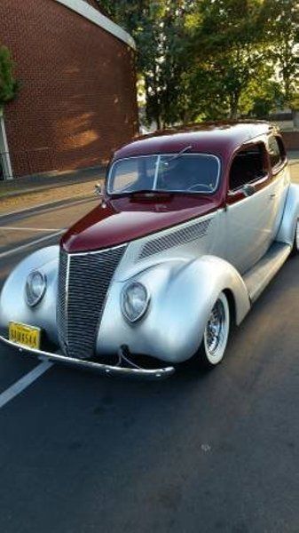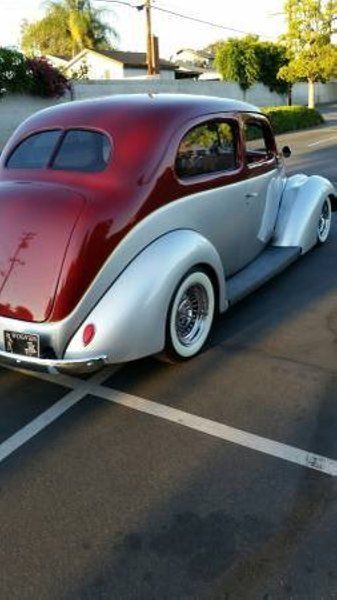 1937 Ford Humpback Sedan For Sale in La Habra, alifornia 90631This 1937 Ford Humpback Sedan is a rare classic beauty. The gorgeous two tone burgundy and gray paint hugs the unique body style of this sedan tightly and is complimented by luxurious burgundy leather interior. It comes with a split front seat with arm rest. When the arm rest is down it looks like bucket seats and when it is up it looks like a bench seat, roviding both style and versatility. This Humpback Sedan features a totally rebuilt 350 Chevy V-8 engine that is mated with a rebuilt automatic transmission. This classic Sedan is extremely solid and has been very well-maintained, s there are no rattles or noises. It features tons of custom upgrades, ome of which include a Mustang II chip with Rack and Pinion power steering. It also has stunning white wall tires with Ford spoke wire wheels, ll new gauge cluster, M/FM stereo and a CD player in the glove box.This hot rod is a real head turner and it is priced to sell! Call today for more information on how you can get behind the wheel of this illustrious vehicle!!!