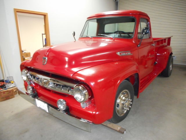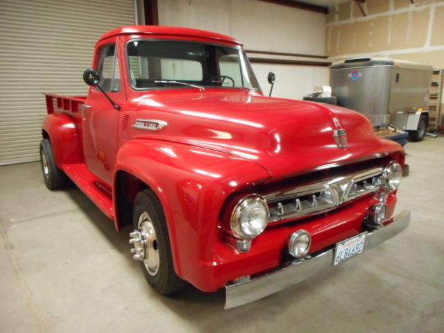 Rare original 1953 Ford F-350 "Express"Pickup with stock 9 foot bed and later model Ford F-350dually rear end with 3:73 ratio. Truck had a frame off rebuild about 4 years ago. Engine: Original 215 L1 6 cylinder OHV. with Header.Complete rebuild, ore block .040, achined crankshaft .020 - .020, new pistons, rist pins, earings, iming chain, xpansion plugs, askets, new emission valves, 80 degrees thermostat, ebuilt radiator, lbs. radiator cap, ebuilt "glass bowl" Holley carb, new fuel pump and water pump.About 2000 miles since rebuild. Transmission: Rebuilt manual 4 speed Borg-Warner T-98 with synchronized second through fourth gears. Clutch: New rebuilt 11" pressure plate, isc, ilot bushing, achined flywheel. Rear End: Newer Ford F-350 8 lug, :73 gear ratio, new axel bearings and seals. New U joints and carrier bearing. Front Suspension: New king pins with honed bushings, ligned and 8 lug conversion. Has power assist steering stabilizer. Rear Suspension: Removed one leaf and installed new shocks for better ride. (Stock F-350s were built with no rear shocks). Brakes: Rebuilt master cylinder, new rear shoes, new hardware and machined drums. Fronts have 75% remaining. Electrical: Converted to 12 volts with new gauges. Rewired as needed for lights, ipers, eater, auges and turn signals. Like new battery. Bed: Original "rare" 9 foot with wood planks and black rubber diamond plate on top. Upholstery: Black fabric/black vinyl, lack carpet with custom install for battery and transmission access. New headliner and door panels to match seat and kick panels. All new glass except for original rear glass, ll new rubber seals. New outside door handles, ent window handles and hardware. AM-FM radio (needs antenna and speakers installed), xcellent chrome grille and bumpers (front is new). All gauges (except gas gauge) speedometer, il, emp and amp are working. All lights including driving lights, urn signals and tail and head lights all working. Hood springs are weak (don't hold hood up without prop) and should be replaced. Also has tow hitch installed. Truck was built to be a dependable driver for short and long trips rather then ashow truck.Any questions, eel free to call Al at (559) 916-4604."BID TOOWN" I reserve the right to end the auction early or block non-legitimate bidders! |