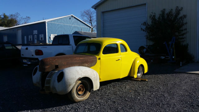What we have here is a 1940 Ford Coupe Street Rod Project!!! Car sits on s10 chassis, new power windows installed, indshield and rear glass is also new. This car is set up for a small block chevy. There is no title, ill provide a bill of sale if that is a issue for you please do not bid will save us both time. That being said car is being sold"as is" "where is" with no warranty expressed or implied. You are bidding to buy not bidding to discuss price after auction ends but are more than welcome to come look at vehicle while auction is current. This is an all steel 40 Ford coupe. Thanks and good luck! P.S.What you see is what you get there are no more parts for car.