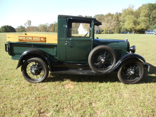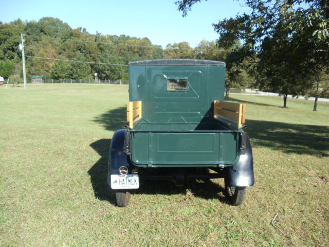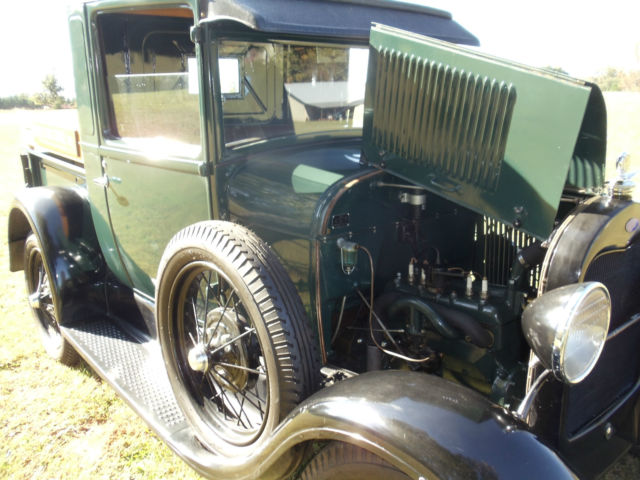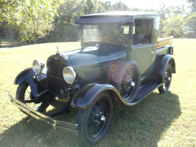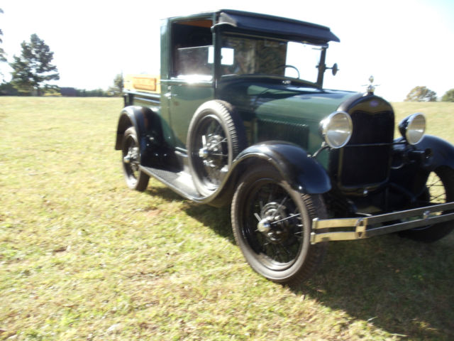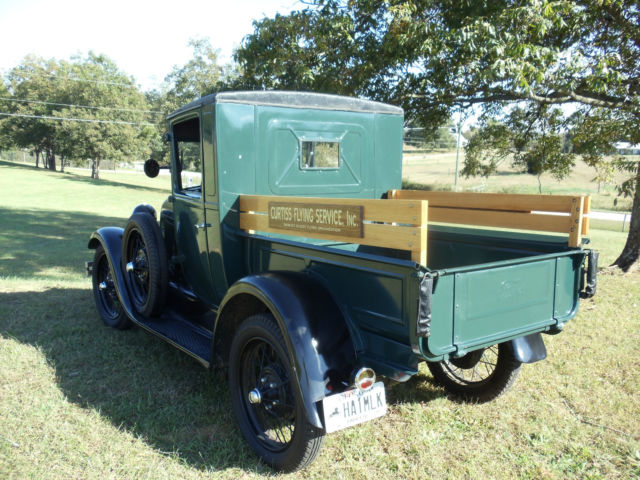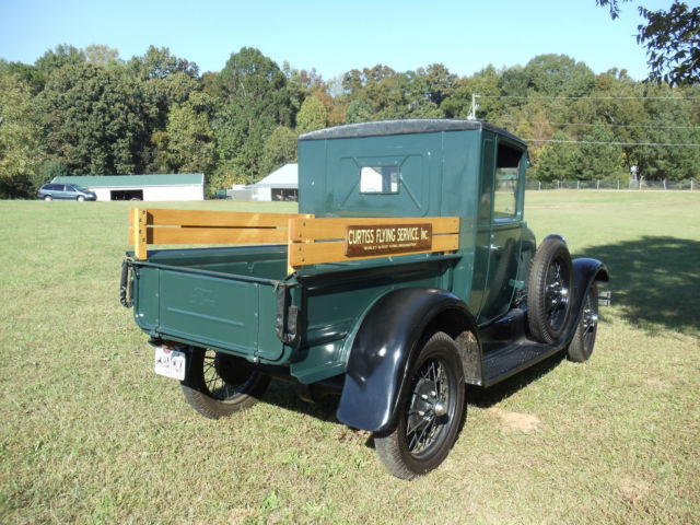 1929 Model A Ford Pickup. Rock Moss Green with black fenders. Fully restored original. This vehicle was in a museum for the past several years, n display with some vintage aircraft. It has been fully serviced and is now ready for touring, nd enjoying. Starts easily and idles with that unmistakable Model A Sound. Runs and drives as it should. Very nice Firestone tires with dual Fender mounted spares. Wooden sideboards, nd very nice wood inside the bed. Interior in excellent condition. This will make someone a super nice truck. Thanks for looking.