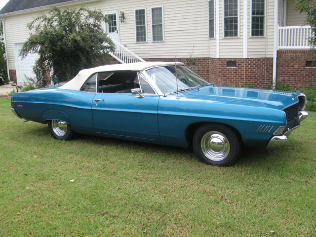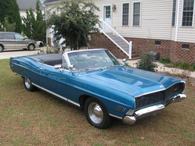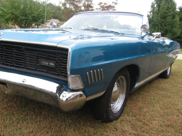 1968 XL ConvertibleRare - 1 of 171 made with 390/4 speed - Rare !I added the GT lower white body stripes last weekend and they make the car look moreaggressive.The XL for those that don'tknowissimilarto a Galaxie, ut does not say Galaxie at any location. This makes these cars a bit more mysterious especially at shows. Check out the Marti report. This factory Gulfstream Aqua Paint color car ( this car was repainted) that was born with a 390 V-8 4barrelCarburetor and a 4 speed ( only 171 carsequippedthis way - Deluxe Marti Report withthisinformation andotherfacts to certify how rare the car is - is includedwiththe car). Video Link including top up and a video of the car on the lift at the shop.- Go to VIMEO and click watch videos and type in: 1968 Ford XL The interior has beentastefullyrecovered in a greyvelour. It was a factoryparchmentvinyl and if you took it back to that this car would be even more stunning. Car has new within the past year Goodyear tires, as tank and the heads were redone. The engine is very clean with all new belts hoses and it looks nice with the chrome valve covers and aircleaner. Has aedelbrock4bblcarb. There is a slight leak in the exhaust manifold where the exhaust flangedonutconnection is. The horn ring is replaced with two nubs and at this time the horn is not operational. I doubt you will find a more rust free 1968 Ford XLconvertiblethan this one. There is only minor bodyputtyin the rear bottom quarters about 3 by 4 inches in the bottomcornerson both driver and passenger sides. The area above the trunk and before the top well also has a bit of putty on either side and it appears smaller than the lower area. No other area have I been able to detect any issues, o you have a very solid car here. Check out the Video showing the floor pans and undercarriageand frame. The paint on the trunk is somewhat fadedandthe remainder of the car isshiny, ut has many nicks and chips from a older paint job. White power top that works with a glass rear window - top is old and has many holes and tears andshouldbe replaced. Notice the rear bumper on the left side has a good dent in it and it did push on the trunk lid and buckle it a bit, runk closes fine, ut do note this area of the car. The car has dummy spotlights on the sides that are in most pictures.The car has adjustableair shocksin the rear and a working Am/Fm CD player in the dash with remote. Thehideawayheadlightsare now operational. We fixed them recently to operate as they were intended to do on thevacuum. They work good and work properly.I like to find cars that are interesting and tinker with them for a while and resell, o here is this neat car that I felt like would be a very interesting rare car to drive now and restore later. I have been driving this a good deal around my area recently. I am the owner. The title is in my name only and it is a North Carolina title that is free and clear.The cool factor is here. With the hidden headlights and the 4 speed you will becruisingin a classy cool ride! Don't miss this one. It is mypredictionthat you will not beableto find a car like this - with these rare engine /transmission options - for 4 times the starting price in 10 years from now!Feel free to call me for any other pictures or information on the car. Larry 252-916-4367.Info below copied from the Marti Report obtained for this car:DOOR DATA PLATE INFORMATIONSerial Number 8W61Z1829798: 1968 W Built at Wayne61: Ford XL 2-Door ConvertibleZ : 390-4V V-8 Engine182979: Serial Number of this Ford scheduled for production at Wayne76B: Ford XL 2-Door ConvertibleF: Gulfstream Aqua Paint,Ford #3065-A4U: Parchment Vinyl Bench Seat05D: Scheduled for build April 5, 96851: Denver DSO (District Sales Office)7: 3.25 Conventional Rear Axle5 : Four-Speed Manual TransmissionDEALER #: 76A009DEALER #: 76A009 COURTESY MOTORS INC 5850 S BROADWAY LITTLETON CO 80120IMPORTANT DATES ORDER RECEIVED: 03/08/68CAR SERIALIZED: 03/27/68BUCKED: 04/04/68SCHEDULED FOR BUILD: 04/05/68ACTUALLY BUILT: 04/10/68RELEASED: 04/17/68SOLD: 04/24/68STATISTICS Your vehicle was one of:524 With this Paint Code52 With these Paint/Trim Codes171 With these Engine/Transmission Codes46 Ordered from this DSO1,926 With Parchment Power Top/Glass BackliteYour vehicle was equipped with the following features: - Parchment Power Top/Glass Backlite - G70X15 Wide Oval White Sidewall Nylon Tires - Body Side Molding - Power Disc Brakes - Power Steering - AM Radio - Heavy Duty Suspension Your vehicle was actually produced on April 10, 968 -- five days behind schedule.