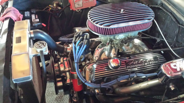 Nice clean older restoration of this Red Falcon. Car is fast. 347 roller motor, ubular A Frame Coil overs, eavy duty sway bar, e cool radiator, luminum heads, aterpump and fuel pump. Ceramic coated long headers (hooker), low master mufflers, lose ratio top load 4-speed, ydraulic clutch, illit distributor, " Rear end 3.8 posi, trange eng axles, altrac traction Bars, anual Rack and pinion steering, wheel disk brakes and welded steel frame connectors. Car is straight and is rust free from what I can see. Rangoon Red. Tires 16" rears, 5" fronts. Engine bay very nice. Underside of the car very nice.