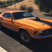 In 1972, he writing was on the wall, ut Ford was still building cars like this Mustang Mach 1, hich delivered plenty of thrills using small block power and handsome good looks. Offering an awesome color combination, actory A/C, nd an entertaining drive, his is a lot of Mustang for the money.Code 5A is called Pewter in Ford vernacular, nd it looks absolutely incredible on the "flatback" bodywork. Even with the stripes and blacked-out hood treatment, his Mustang looks sophisticated, ike a muscle car for a grown-up, nd loses none of its performance attitude despite the subtle color. It was freshly repainted in the last few months and looks extremely good, ith a deep shine and just the right combination of silver and gold in the final mix. The Mach 1 was the top-of-the-line offering in 1972, nd you'd better believe Ford wanted to get it noticed, o it wears a front chin spoiler, performance hood with NACA (not NASA) style hood scoops, nd a rear wing out back. It also gets traditional Mustang performance items like the rear window slats, ower valence with trumpet-style exhaust tips, nd the aforementioned stripes, hich are an obvious riff on the Boss 302 graphics. There's not much chrome aside from the rear bumper, nd that's in excellent shape, nd even the body-colored urethane front bumper looks pretty much as-new. This is an easy car to like.The two-tone black and silver interior nails the same sophistication that the bodywork enjoys. The seats have obviously been re-covered, nd since the original color was green, ust about everything else has been replaced at some point. There's some age on the carpets on the lower half of the door panels and the center console has a few nicks, ut there's nothing in here needing any immediate attention. The factory gauges include a tachometer and auxiliary dials in the center stack, s well as a clock on the console. Factory A/C is backed by modern components working behind the scenes to make it efficient, nd there's an AM/FM stereo radio in the middle of the dash that powers speakers in the rear quarter panels for surprisingly big sound. The trunk is clean and carries what may just be the original spare tire and a jack assembly.The 351 cubic inch V8 under the hood was rebuilt a few years ago and pretty much sticks to the factory recipe. Up top there's a 4-barrel Holley carburetor, ut otherwise it is the way Ford intended. The big air cleaner assembly dominates the engine bay, ut the modern A/C compressor gives you a little breathing room and you'll note that all the hoses are new. It could easily be taken up a notch with an afternoon of detailing, ut even as it sits, his is a great driver-grade car that's obviously led a good life. It starts easily, dles well, nd moves with surprising torque on tap, hich is aided by the quick-shifting C4 3-speed automatic transmission. Flowmaster mufflers add that familiar Ford Mustang performance exhaust note and Magnum 500 wheels never looked better than when they're mounted on one of these early '70s Mustangs. 205/70/14 Goodyear radials at all four corners deliver sure-footed handling and an easy ride.With the prices on early Mustangs inching up all the time, e're seeing some gains on these cars as well. We love the look of this Mach 1 and with all the heavy lifting already done, here's nothing left to do but get in and have some fun. Call today!