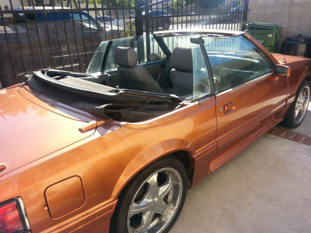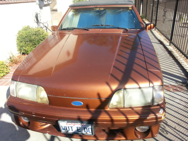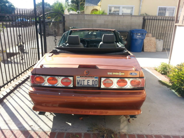 1989 Mustang GT 5.0 Convertible Runs & sounds great! Fun to drive stick shift FlowMasters Working power windows and roof Working AC New heater core and battery Newish clutch (incl. flywheel) Working AUX cord plus 2 amps in trunk Custom paint "burnt orange" with black roof Aftermarket rear lights Custom license plate Asking $4,500 obo I have owned this car for 10 years (3rd owner). I am ONLY selling this car because I am moving out of state. I love this car and so will you. This car gets compliments constantly! Note: There is some damage to the front bumper, ecause someone scraped up against it while it was parked. Otherwise, eautiful condition. |
