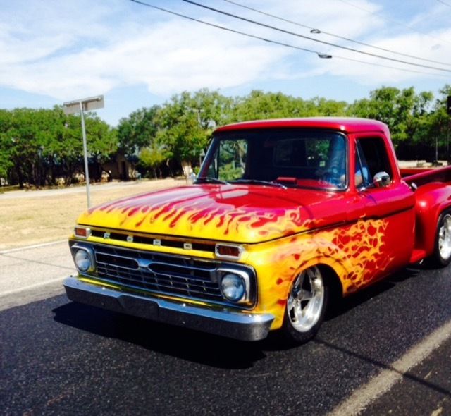 | Awesome running and driving pro street. with a powerful sound at idle. Truck comes ready for your local Cars and Coffee event or a long cruise to your favorite destination. A blast to drive. 1965 Ford F-100 Short Wheel Base Step Side Build List:1970 Camaro Sub-Frame w/ Independent Front Suspension. Disc Brakes and a Wilwood Brakes proportioning valve. 4 Bolt Main 355 ci. Small Block Chevy Speed Pro Forged Pistons 9. 6. 1 76cc Aluminum HeadsLunati Cams . 534/. 540 hydraulic flat tappet camHolley 750. Professional Products HURRICANE Single Plane Racing ManifoldHooker Long Tube HeadersTH-350 w/ Adjustable B&M shift kit matched with Hurst SHifterJegs 2300 Stall ConverterChevy 10 Bolt Rear W/ 308'sLug pattern is Chevy 5x4. 75 at all four corners sitting on 18x8 American Racing Torque Lites. If you have any questions at all please don't hesitate to give me a call at 512-757-7549 On Dec-22-14 at 09:02:21 PST. seller added the following information:https://www. youtube. com/watch?v=I47do5oeTck&list=UUtcTe6OFOiaobOhhwXdWXWw&index=1 |