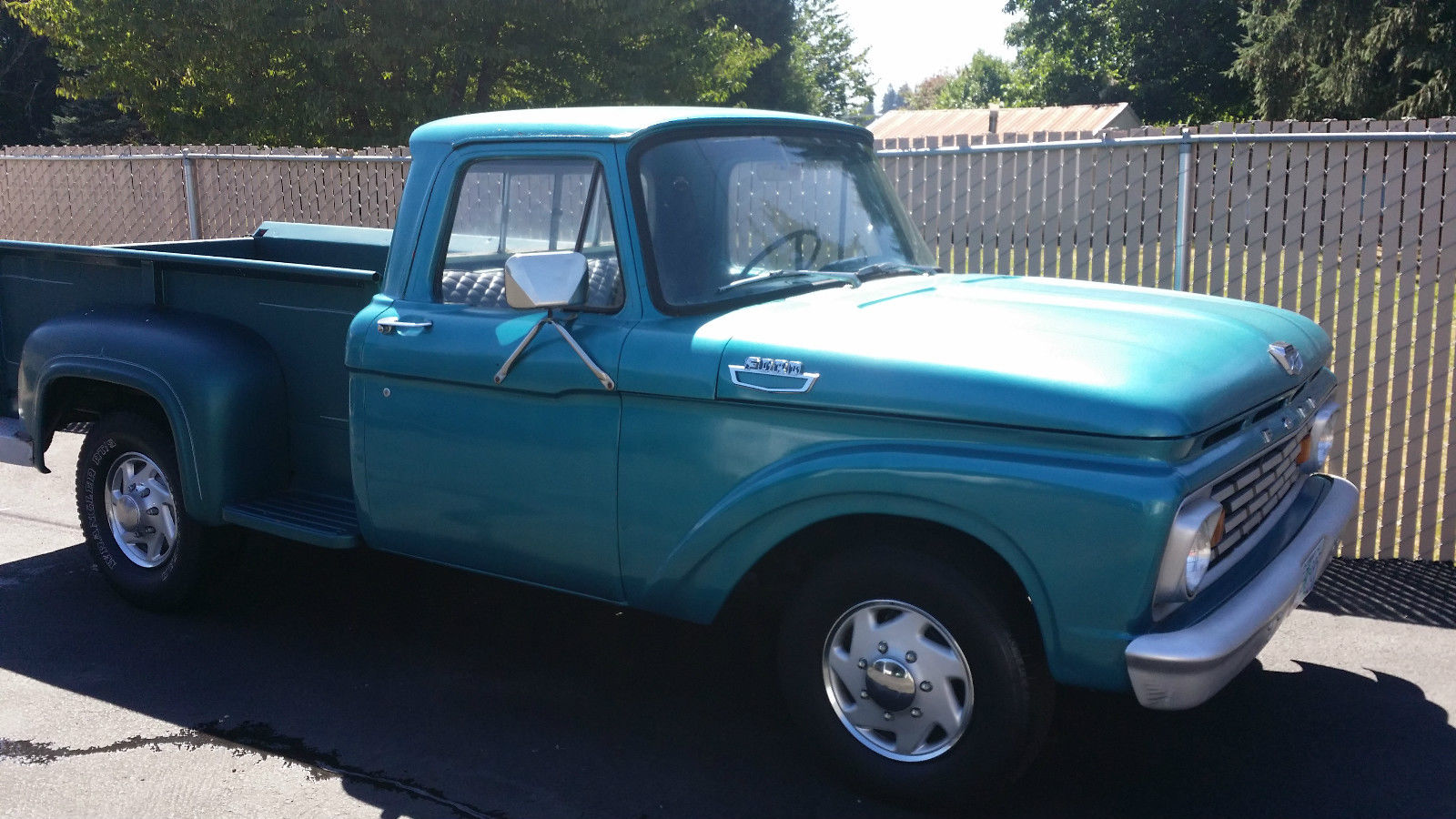 | 1963 ford long box step side 4 speed with custom black interior. last owner had it for 35 years. always garaged and pampered. listing it for Him because He is disabled now and can not drive a 4 speed. This is a beautiful truck. Try to find another 63 this nice. On Dec-21-14 at 23:26:00 PST. seller added the following information:NO RESERVE |
