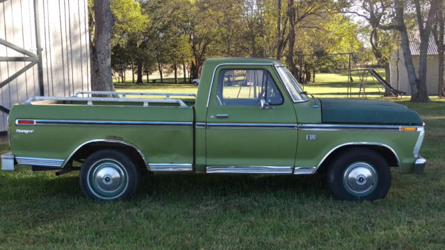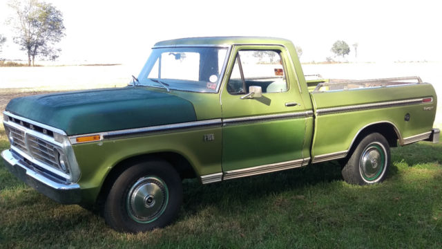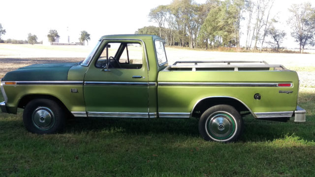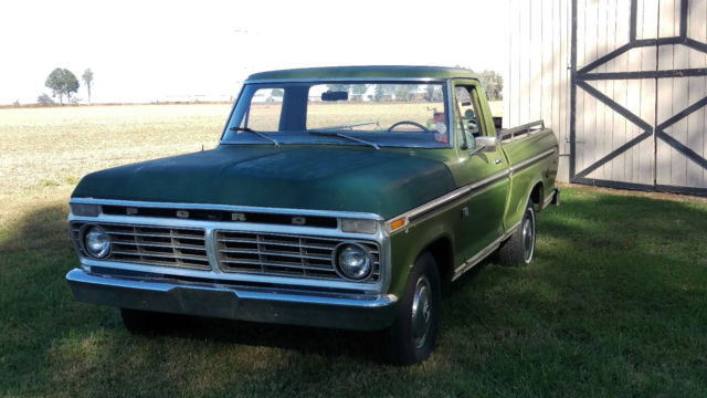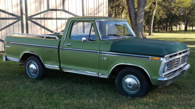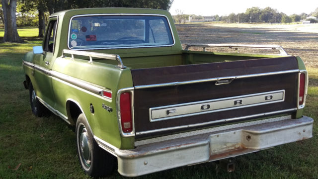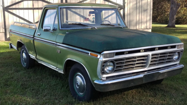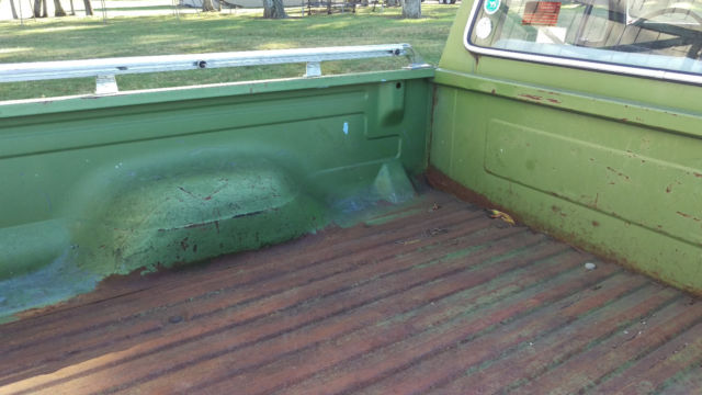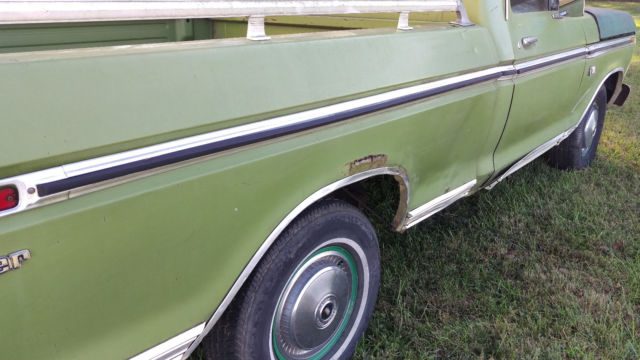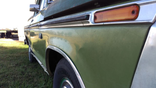 1974 Ford F100 Short Wheelbase, anger package, wheel drive, 02 engine, uto transmission, ront disc brakes, ower steering. Great little truck. This could easily be a daily driver, r be restored, r turned into a street truck. To be a daily driver it only needs a power steering leak fixed and 2 new tires. The brakes are great. The truck stops smooth and straight. The transmission shifts fine, ut the shift indents are sloppy when you shift it from Park to Drive or Reverse . The engine is very quiet and smooth and does not burn any oil. The factory color is Lime Green Metallic. 9 inch rear end with 3.25 gears. The tailgate is new with no dents. The previous owner replaced it and never painted it. The sticker from the manufacturer is still on the inside of the gate. I think the hood was replaced at some time, nd it is in very good condition with no rust. The passenger side rear bed is the worst part of the truck. Some rust directly over wheel well, nd a dent in front of wheel well. Some trim is excellent, ome needs replacing, nd some could be repaired. As you can see by the pictures, he truck is mostly rust free. The cab mounts are excellent, he frame, heel wells, ed and engine compartment is rust free. The floorpans have a little rust, nd one of the photos I have posted shows the worst part. The door frames and doors are very nice, s per photos. This truck is good enough to simply drive, r be an excellent start to a restoration or restomod truck. Call anytime about questions. This is all the photos I have, ut if you want to see something specific, can try to take one and email or text you. You can also arrange to see it, ust call. 615-498-7379 A Paypal deposit of $300 will be expected within 24 hours of auction end, n order for me to hold the truck. I expect full payment within 1 week, ith all arrangements for pickup completed. I will help to facilitate shipping if necessary, ut I will not pay or arrange shipment for you. This is an item for pick up only. The balance will be paid in cash. Thanks!