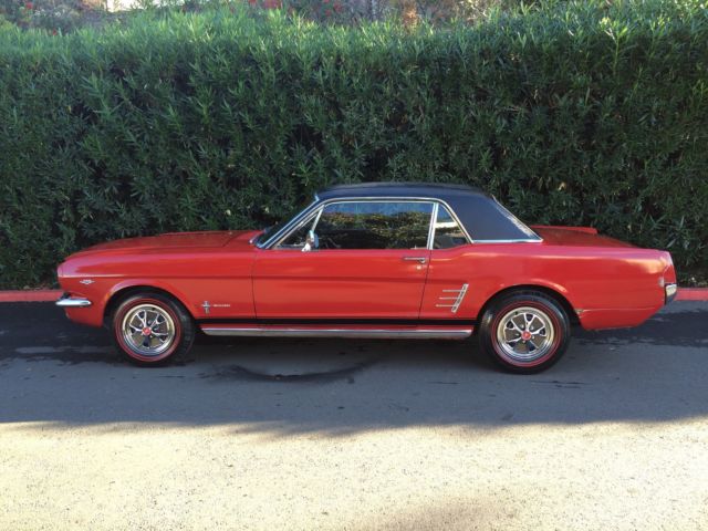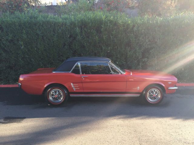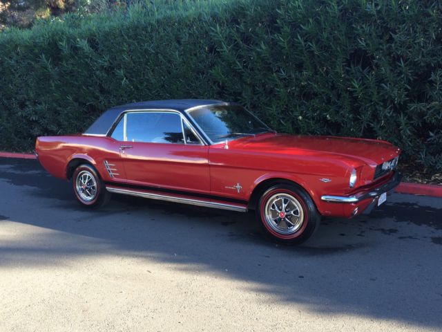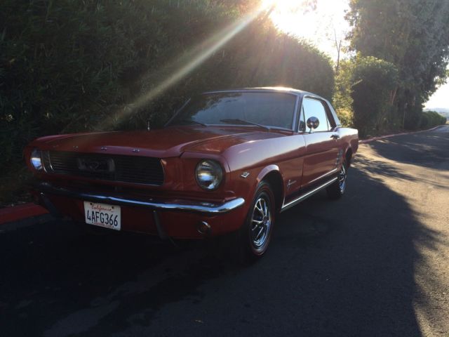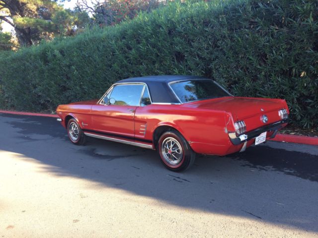 1966 Ford Mustang The engine is a 289 V8 C code with only 114k original milesInteriorlooks nice has brand new carpetThis car has never left the state of CAFloorboards are nice and cleanThis is Mustang pony only had 2 owners one was alittle old lady never abused was only driven to Church on Sunday local grocery shopping And weekly bingo She was too old to keep driving Here's a list of Options on the Mustang. 1965 Ford Mustang V8 CoupeCalifornia Born Factory 289 V8 Engine C4 Automatic Transmission Black Vinyl Top Double Red Line Tires Steel Style Wheel Cover with Red Center Caps Black GT Side stripe Power steering Plaid Trunk Mat and spare tire and jack If you have any questions please call me (510) 209-8182