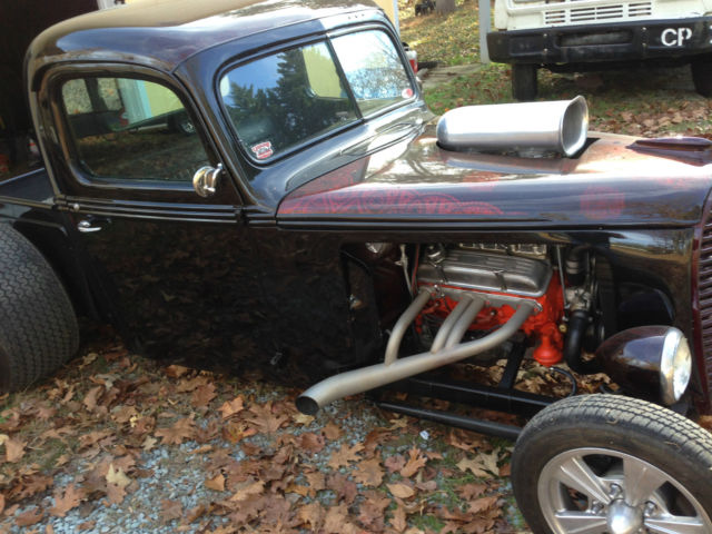 "One of a kind hand built " ALL STEEL OLD SCHOOL STYLE Street Rod Built 350 v8 with 2, barrel 650 eddlebrock carbs, 71 blower pushing 500+ h, 400 Performance automatic Racing transmission 9" rear end 8.5K paint job chopped 3 foot bed new battery bench seat custom painted dash Disc Brakes Electric Fan Side Pipes Leaf Spring Front Suspension under bed Mounted Battery Very Sick Ride!! |