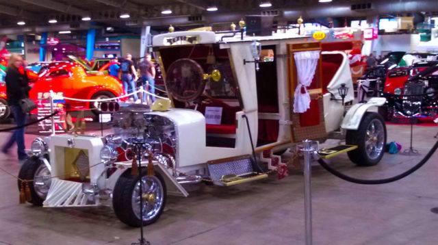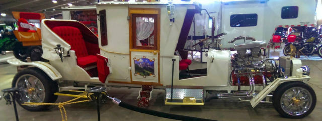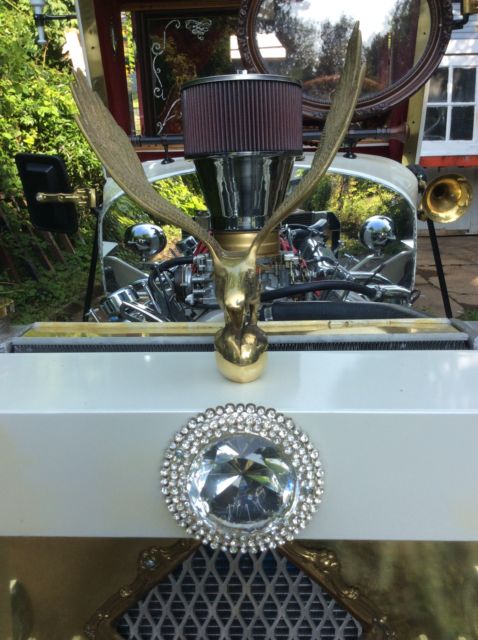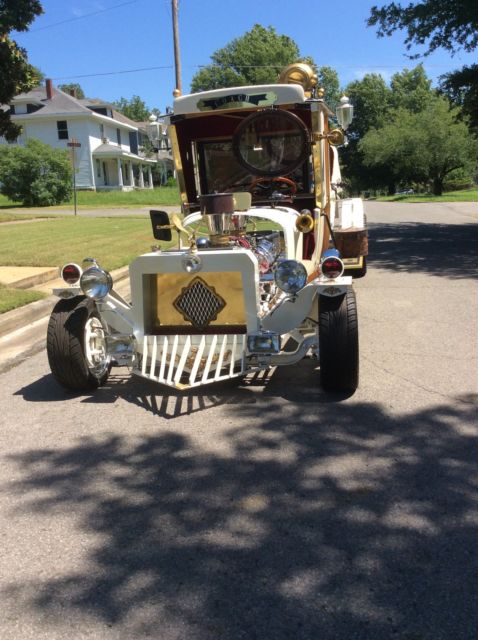 Very Unique -- One of One Clear Oklahoma Title Recognized by Mr. George Barris (in person at Daryl Starbird Show in Tulsa, klahoma 2014) as "a beautiful version of my Munster Mobile". (direct quote). This is the only time this vehicle has been out of the garage and shown. This Starbird Show was for their 50th Anniversary which included the most selected cars in the country. Mr. Starbird sent pictures of this car to Mr. Barris and called him to tell him this car was going to be in their 50th Anniversary Show. Mr. Barris flew to Tulsa and stayed the entire weekend to meet me (the builder) and present me with these special awards and recognition. This car was also selected by Mr. Daryl Starbird's judging staff as one of the Top 5 in the show. Paint is 2012 Cadillac Pearl White Interior is Top Quality Red Velvet, ine Exotic Woods, rass etc. Wheelbase is 18 feet -- Overall Length is 21' Completely Functional and Professionally Hand Built Seats 9 or More (Chauffeur, ather, randpa, on etc.) Only selling to finance the next build. 350 Engine with 350 Transmission Rear Suspension is Leaf Spring from a 2004 Chevrolet Silverado with Disc Brakes Front Suspension is from Speedway Automotive with Power Brakes Steering is from a Chevrolet Vega Induction has recently been changed to single 4-barrel for a look that is more appropriate to the style of the build and better fuel economy, (see photos). |