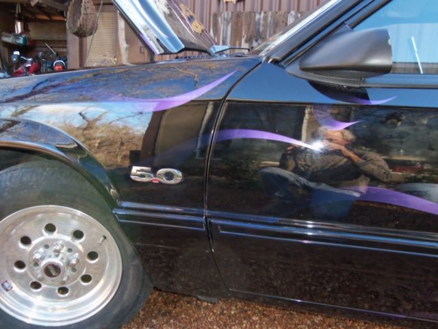 | 1989 foxbody ford mustang 5.0 cobra, spee, 411 posi-trac rearend freshly installed .Runs and drives grea, very fast car not for beginner .Beautiful black paint with purple ghost flame, clean interior, ractically new tires . READY TO DRIVE OR RACE . |