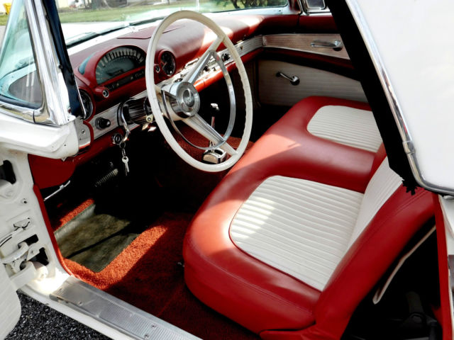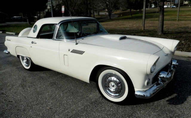 1956 Was the lowest production year for the two seater Thunderbirds. The number of units produced were only 15,631 . The standard drivetrain onthe 56 Tbirdwas a 292 V8 with 3 speed manual transmission . An optional 312 Y-Block V8 was available for those that wanted more power andperformance. Add the 2 speed automatic transmission to your option package and you have one rare bird. This Rust Free1956 Thunderbird has been with the same family for over 18 years and recently they have decided to let someone else enjoy her . The Bird underwent a complete restoration about 12 years agoand continues to show and perform amazing.Her beautiful white paint,timeless two tone red and white interior and wide white wall tireswill take you backin time with style and class. The 312 V8 and 2 speed automatic transmission along with power steering make this 1956 a pleasure to drive. The power seat option allows adjustment for a comfortable easy maneuvered seating position . The Bird rarelycruisedwith the top on her even thoughshe looks great with it onit is easily removed as it is fiberglass and light weight . This 1956 Thunderbird is not only a blast to drive but is a great and rare investment opportunity . Any questions please call Steve @ 443.742.7076 |