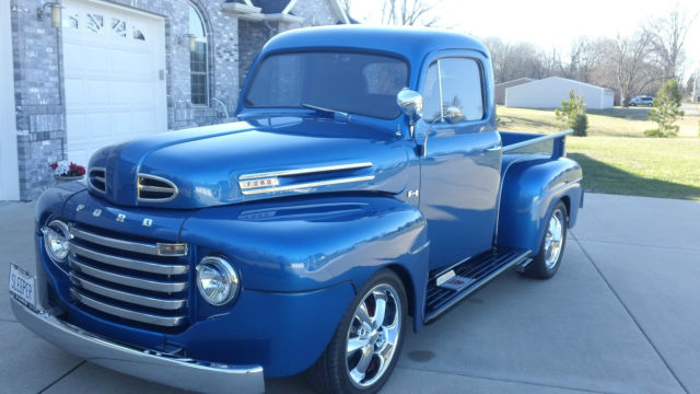 1948 Ford F1 pickup: Ok here is the deal with this truck. If you are looking for an honestly great F1 Ford you really need to take a close look at this truck. The cab is a rust free cab and is as structurally sound as it was when it was new. The fenders and running boards are premium fiberglass which is very thick. These panels do not have any fiberglass waves or wrinkles as many fiberglass panels do yet saving weight. Bottom side of fenders are lined so you do not have to worry about rocks spidering the outside finish. The hood and bed are steel as the cab is and rust free also. Paint is high quality with no issues, o chips, racks or etc as you can see in the detailed photos. All stainless chrome isoriginal and has been polished to an outstanding luster. The interior seats are cloth power on the drivers and manual on the passenger side. Carpet is new premium quality as everything else on and in the truck is also. All lamps are new which included high intensity headlamps and turn signals. Instrumentation is Dakota digital which is amazing, ew professionalwiring complete from headlamps to tail lamps. MECHANICAL: Engine is 1992 Mustang 5.0 HO backed up with 4 speed transmission, ollowed with Ford 8.8 traction lock rear end with TA performance support cover. Complete fuel system is new from new gas tank, lectric fuel pump, uel lines, ilters and new 600Holleycarburetor. Stainless steel Shelby TRI-Y headers, obra ovalair cleaner, ord racing valve covers, erformance plug wires, lug wire covers, erpentinepulley system with P/S, luminum high volume radiator with aluminum overflow. Aluminum dual exhaust with stainless side tips deliver an outstanding sound yet still quite inside. SUSPENSION: Front suspension is second generation Firebird. Z28 1 1/4" anti sway bar, ully adjustable tube upper control arms and lower tube control arms with coil over adjustable springs. New steering components including new gear box. Steering is tight and turns corners like a sports car. BRAKES: Front brakes are Pontiac Firebird power disc brakes, orvette master cylinder and booster, ith remote fillerreservoir and Cadillac Eldorado rear disc brakes. Parking brake lever is mounted between seats and works great. Brakes will stop as well as most anything on the road today. WHEELS/TIRES: Front wheels are 7"X18" chrome Foose five spoke with 225/45/ZR 18" street tires. Rear wheels are 9"X18" chrome Foose five spoke with 275/40/ZR 18" street tires. IN ADDITION: This truck can be shown or driven anywhere you desire with no concern to mechanical problems. Solid in every way and drives perfect. This truck runs very respectable but is not a race truck, et strong. I desired dependability more than speed. I am 61 years of age and simply want it to go to a good home. If you have any questions please feel free to contact me with any concerns you may have. One option I chose not to install on the truck was A/C but if the new owner desires it can be installed very easily. Again I assure you this truck is for real and is not patched up junk.. 618-443-8055 |