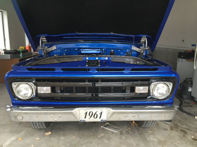 Rare 1961 Ford F-350 dually all original numbers matching ground up restoration. Original 292Y- Block V8 with a 4 speed manual trans. holley carb, eaders with dual exhaust, omplete rebuild on motor, rans, nd all running gear, ustom black interior with cd player, ll new glass with tint, ll new rubber in and out, ustom built rear bumper with hitch, ver 4000 in custom viper blue pearl paint, ll trim is triple chrome plated, eautiful built truck one of a kind. I have a file of every dime spent on it. I also have a disc full of pictures, ust send your email for all of them.
