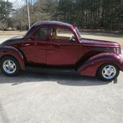 1938 Ford Coupe, ice clean straight hot rod. The motor is a Mercruiser 454 out of an new Talon speed boat (1998) currently has approx 19000 miles. This is a roller cam motor rated at 330 hp edelbrock intake, emon carb, rans is a turbo 350 fresh rebuild. All new 9 inch ford rear currently 3.00 gears. Stock chassis boxed, ith Progressive Automotive front crossmember with 84 Corvette front suspension with QA1 coilovers. Rear suspension is Chris Alston chassis works street 4 link with QA1 coilovers. Chassis is back halved with 2x4 tubing. Chassis is gloss black powdercoated. Mini wheel tubs, ock Valley stainless steel fuel tank 16 gallon with internal electric fuel pump. Rear wheels 17x12 smoothies from Pete Paulson chrome rim painted centers with Diamond Back whitewalls 335-35-17 tires, ronts are 16x6 with 165-45-16 Diamond Back tires. Thunderbird power steering rack. Alternator, tarter, s pump all new. Body is straight as an arrow gaps are excellant, it and finish is excellant. Jefferis autobody 1 piece windshield. Lokar shifter, hrottle cable and kickdown. Beede gauges and all work as they should. stainless steel exhaust with flowmaster hushpower mufflers, ot loud at all. Stainless steel brake hoses. ECI power brakes and residual pressure valves. Power windows. Vintage heater that was recored, ut not hooked up. Paint is acrylic enamel with a flattener added. A few stone chips in front fenders around headlights. This car was built with a traditional emphasis but modern street rod mechanicals. Was featured in American Rodder and Street Thunder Magazines, nd Calender by Rich Chenet, umerous awards including Goodguys picks at Hershey shows. Very reliable car. No known issues, ar is for sale locally, o auction could end early.